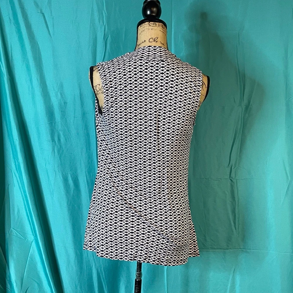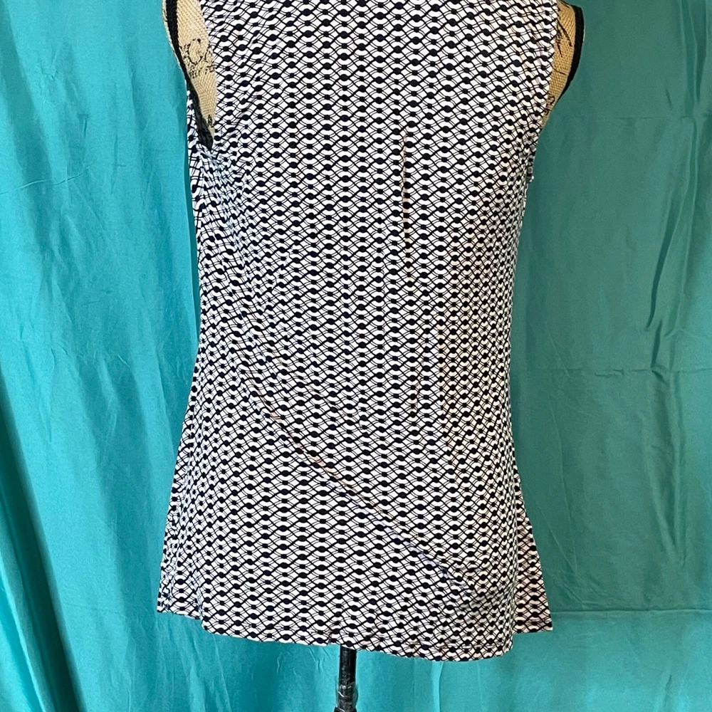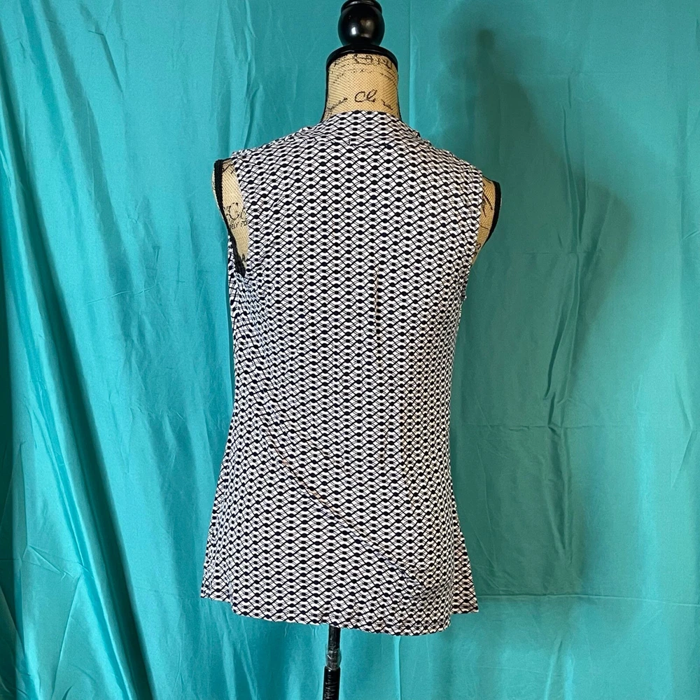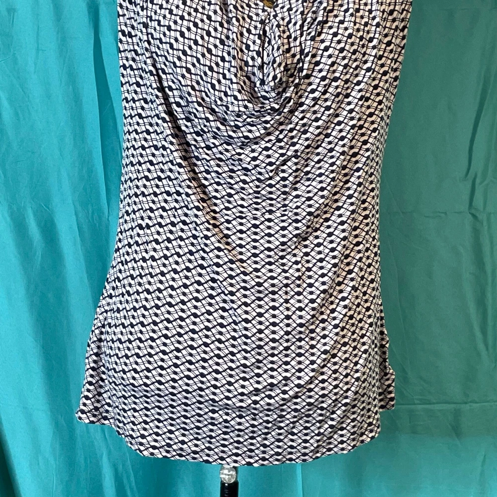 Halogen Womens Blouse Black White Medium Cowl Neck Sleeveless Pullover #08404 In very good condition Measurements (Please see photos for measurements) - Length: Front length, center top-to-bottom - Rear Length: Rear, center top-to-bottom - Width: Across the font chest, armpit seam-to-seam Wondering if our item will be a good fit? We recommend measuring a similar item in your wardrobe and comparing those measurements to ours. (Please keep in mind that our measurements may differ slightly from your own)