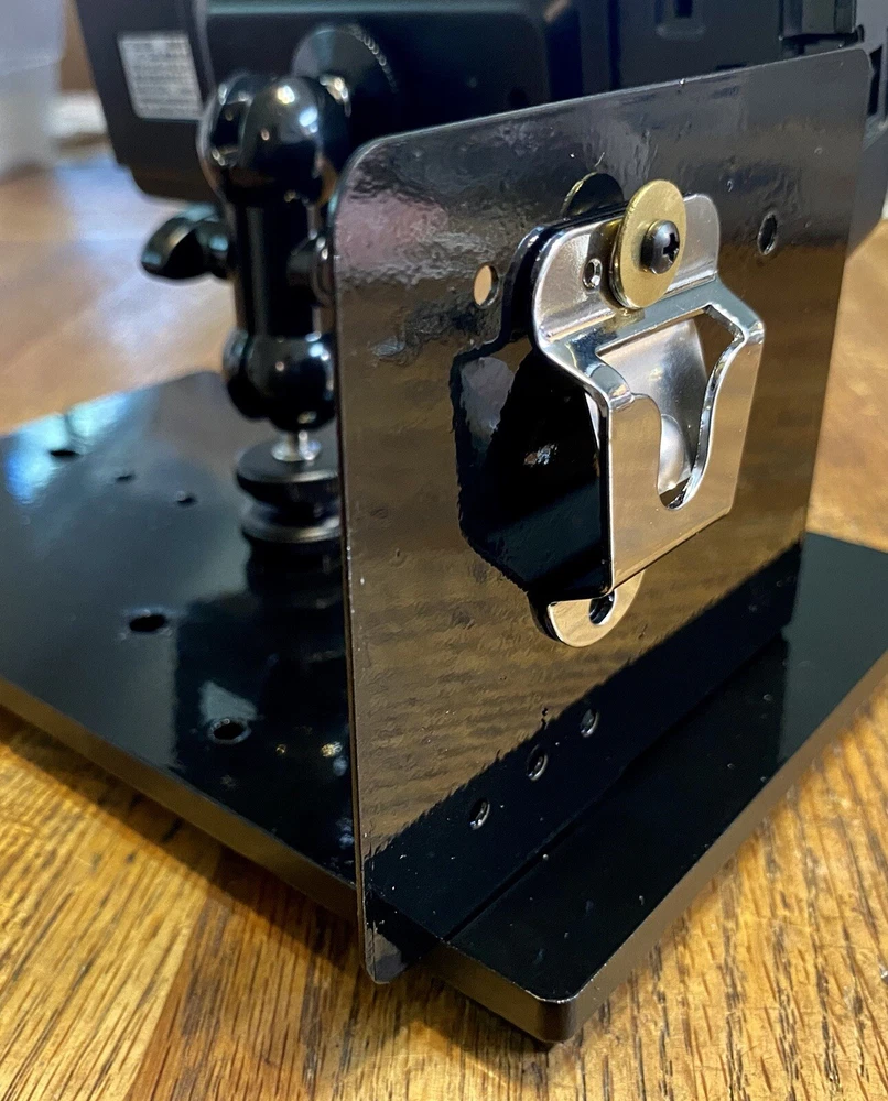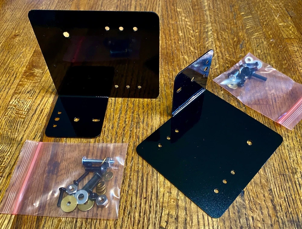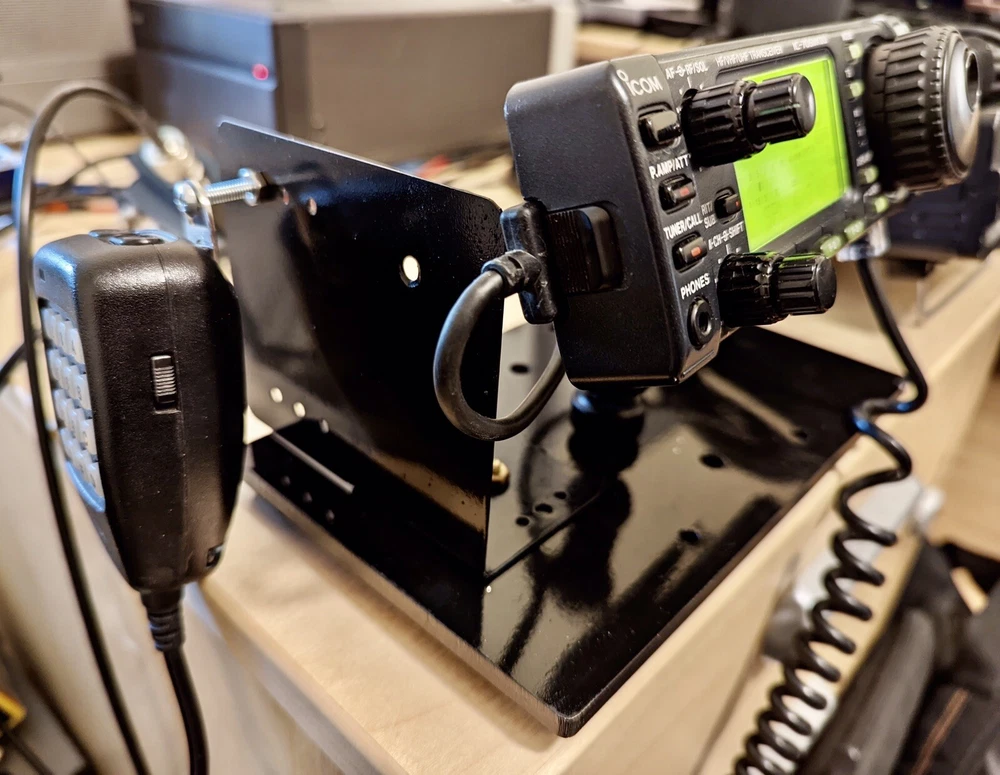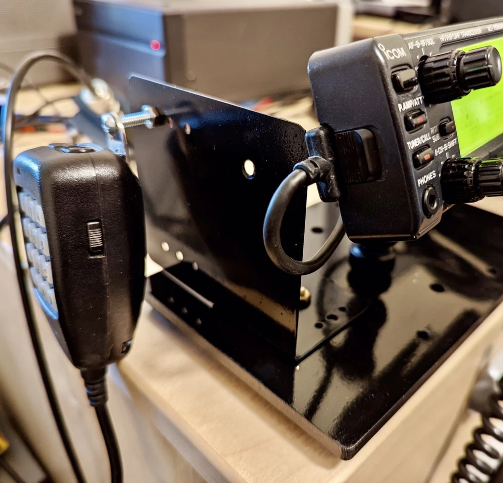 ONE Hand Microphone Bracket AND Mic CLIP. No Base No Radio. Please Read Below !!!<<<<<< This Hand Mic Bracket mounts at Left as shown or can be mounted at Right end of base or other points. <<< >>>Also by your request I can send bracket that is bent in opposite direction cs that shown in photo !!! Radio & Base in photo are for display ONLY. DSCP / Design Services Custom Products Universal Microphone Bracket and Screws , washers, and nuts Hardware Kit for DSCP Universal 3Lb Baseplates and other applications. Predrilled multi-use all steel Bracket. One or more ship same fee with 1st Class or Priority or Intl. Multi Use Design Universal Bracket predrilled for different attachment points and various microphone clips. No clip or base or pedestal supplied. See photos of examples of clips Bracket is predrilled for. Predrilled and supplied with attachment screws and nuts hardware assortment.
