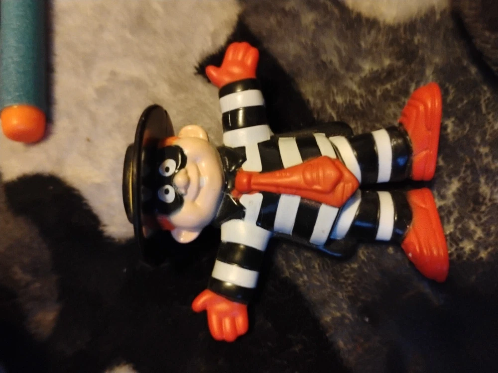 This vintage McDonald's Hamburgler toy is a must-have for any collector. Made in China in 1995, this 2.75" PVC figurine is a perfect addition to your Fast Food & Cereal Premiums collection. The toy features the iconic Hamburgler character and comes with a cake topper. This McDonald's toy is a rare find and a great piece of nostalgia for anyone who loves the fast-food giant. The figurine is in great shape and is perfect for display. Add this unique piece to your collection today.