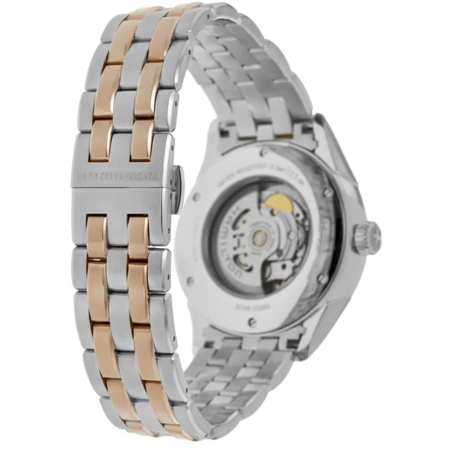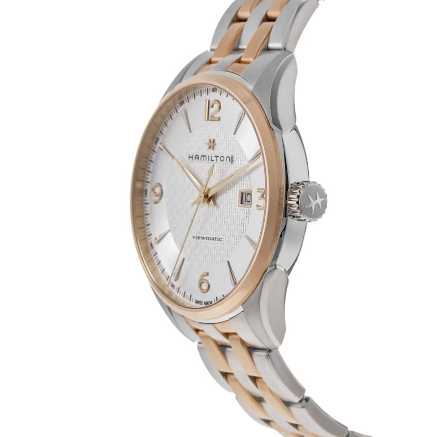 Hamilton Jazzmaster Viewmatic Auto Silver Dial Two-Tone Steel Men's H42725151 100% Brand New & Authentic Product Shipped Within 1 Day Top Seller Reviews speak for themselves Click to view Shop risk free with WatchMaxx Money Back Guarantee 2 Year Warranty Usually ships within 1 business day of receiving payment. We accept PayPal. For other payment options please contact us. Details Warranty Return Policy Shipping & Tax About Us Questions? Product Details Case Case Material Stainless Steel Case Description Brushed and Polished Rose Gold PVD Coated Stainless Steel Case Finish Brushed and Polished Case Shape Round Case Diameter 44.00mm Case Thickness 11.60mm Case Back Transparent - See-through Caseback Bezel Fixed Crystal Scratch Resistant Sapphire Crown Push-Pull Dial Dial Color Silver Dial Description Luminous Rose Gold Tone Hands, Arabic Numeral & Stick Hour Markers with Minute Markers Around the Outer Rim and the Date at 3 o'clock on a Silver Dial Dial Markers Arabic & Stick Hand Color Rose Gold Calendar Date at 3 o'clock Functions Date and Hour, Minute, Second Movement Movement Type Automatic Self Winding Engine Caliber H-10 Power Reserve Approx. 80 Hours Movement Description Swiss Automatic Additional Information Water Resistant 50 Meters - 165 Feet Style Dress Warranty 2 Year WatchMaxx Warranty Band Band Material Stainless Steel Band Finish Brushed and Polished Band Color Two-Tone Band Description Brushed and Polished Rose Gold PVD Coated Stainless Steel Two-Tone Bracelet Band Type Watch band Clasp Type Folding Clasp Description Brushed and Polished Stainless Steel Additional Info Also known as H42725151 Warranty The length of the warranty period for all items are specified in the item details, and are guaranteed from the date of purchase. Warranty covers only defects in manufacturing or materials, movement, and battery replacement. Warranty excludes scratches or changes to the finish, damage to the glass, crystal, crown, stem, case, strap, or bracelet. Damage caused by excessive wear-and-tear and/or physical abuse, or resulting from wear under conditions exceeding the manufacturer's water resistance limitations is excluded from the warranty. WatchMaxx will repair the product, including the cost of all parts and labor during the warranty period. WatchMaxx will return the repaired or replacement item at no charge to the customer. Warranty return parcels must be clearly labeled with a return authorization number obtained by contacting WatchMaxx customer service. Parcels without a clearly visible valid return authorization number will be refused. Goods must be returned via a traceable carrier, such as FedEx, United Parcel Service (UPS) or the United States Postal Service (USPS), with insurance and delivery prepaid by the purchaser. Parcels shipped collect will be refused. The customer is liable for loss or damage in transit. WatchMaxx disclaims any liability for consequential or incidental damages for breach of written or implied warranty of this item, including merchantability or fitness for a particular purpose. This warranty gives you specific legal rights and you may have other rights that vary from state to state. Some states do not allow the exclusion or limitation of incidental or consequential damages, so the above limitation may not apply to you. Return Policy After receiving the item, contact seller within: 30 days. Refund will be given as: Money back. Return shipping: Seller pays return shipping. All items purchased from WatchMaxx may be returned with the following conditions, except those marked as "Final Sale": Merchandise must be returned within 30 days of receipt, in original, unused condition with all original tape, plastic protectors, and stickers intact and having never been removed. All returned items, whether for refund, repair or exchange, must be clearly labeled with a return authorization number obtained by contacting WatchMaxx customer service via email to WatchMaxx. Parcels without a clearly visible valid return authorization number will be refused. Goods must be returned via a traceable carrier, such as FedEx, United Parcel Service (UPS) or the United States Postal Service (USPS), with insurance and delivery to WatchMaxx prepaid by the purchaser. Parcels shipped collect will be refused. The customer is liable for loss or damage in transit. Refund of the purchase price will be issued in the same form as payment received. WatchMaxx policy is to attempt to contact the purchaser for 3 business days to resolve delivery problems or if delivery was refused. After 3 business days, such items will be regarded as returned and eligible for refund subject to the conditions above. Shipping in the USA Expedited Shipping & Insurance Free Next Day Air Shipping & Insurance $15.00 Sales Tax Taxes may be applicable at checkout. Please refer to eBay policies. International Shipping We offer a flat shipping & insurance charge of $49.99 per order. We ship via expedited shipping that usually arrives within 2-4 days. For shipping to Russia, allow up to two weeks for delivery (USPS does not guarantee delivery times). WatchMaxx charges only for the product and shipping to international delivery destinations. The shipping documents and invoice will show the actual purchase price according to local and international law. Any duties or taxes, including GST or VAT taxes, are the sole responsibility of the purchaser. These charges, if any, are usually collected by either the carrier or local customs authority when the order reaches the destination country, prior to delivery of the order. Please contact your local customs authority for details before placing your order. About Us We are a family owned business with over 20 years of experience selling fine watches, and have been selling investment-quality timepieces online since 2004. Today, WatchMaxx is among the leading online retailers of luxury watches. We are proud of our reputation, and enjoy high ratings by independent sources and custome