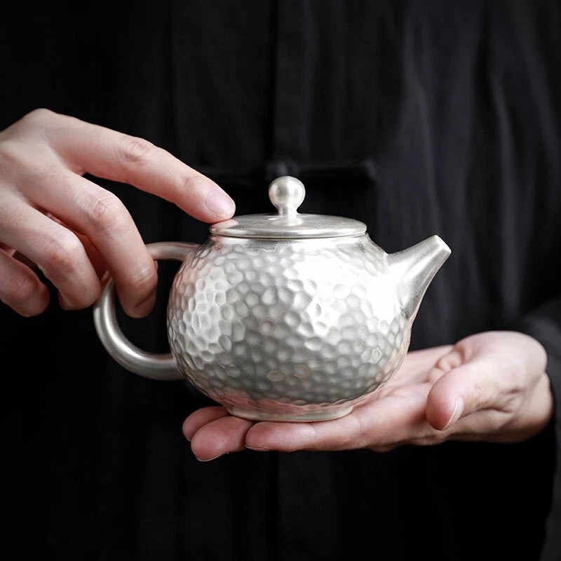 Absolutely stunning craftsmanship! The hammered finish gives such elegant texture, and the included silver leaves are a beautiful bonus. Makes every tea session feel like a luxurious ceremony.