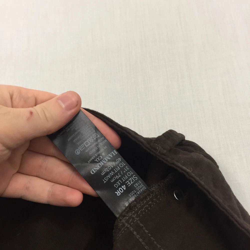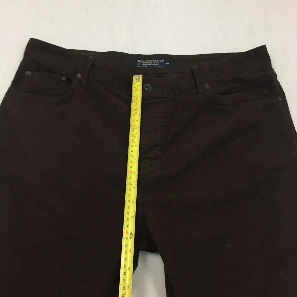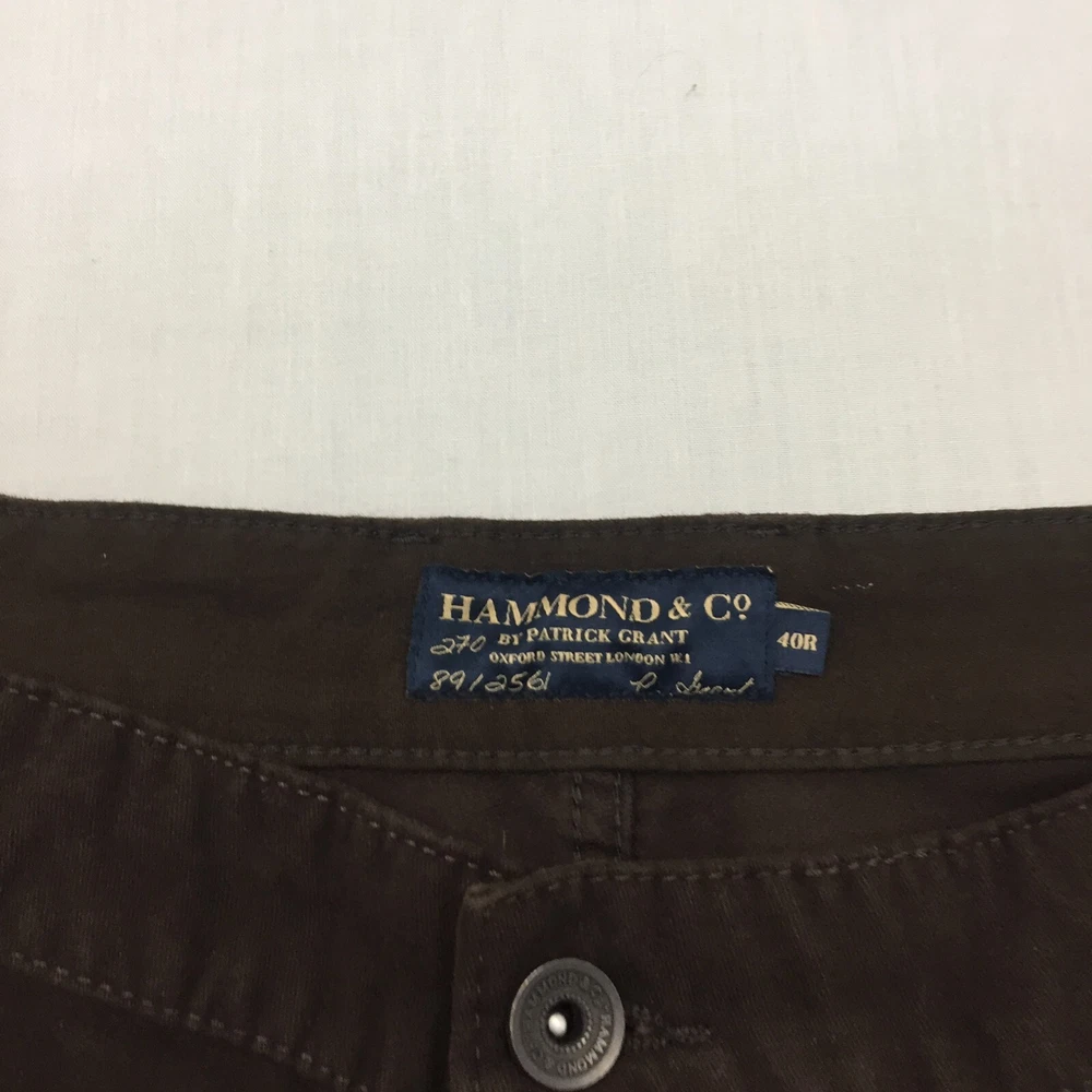Handmade: No Size Type: Regular Inside Leg: 31 in Brand: HAMMOND & CO Accents: Button Fit: Regular Type: Trousers Waist Size: 40 in Size: 40 Material: Cotton Blend Style: Chino Garment Care: Machine Washable Rise: Mid (10-12 in) Leg Style: Straight Country/Region of Manufacture: Unknown Vintage: No Pattern: No Pattern Seller Notes: “Good used condition, check below for full description & photos.” Colour: Brown Season: Autumn, Spring, Summer, Winter Pocket Type: Coin Pocket Closure: Button Department: Men Occasion: Business, Casual, Travel Personalise: No Fabric Type: Canvas
