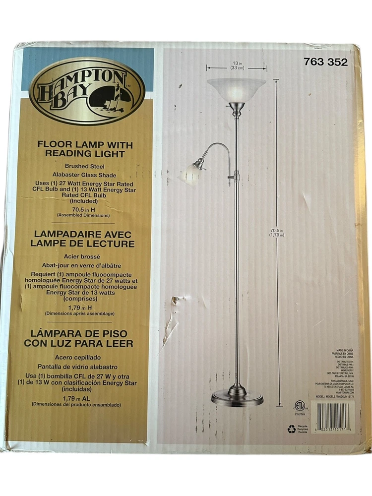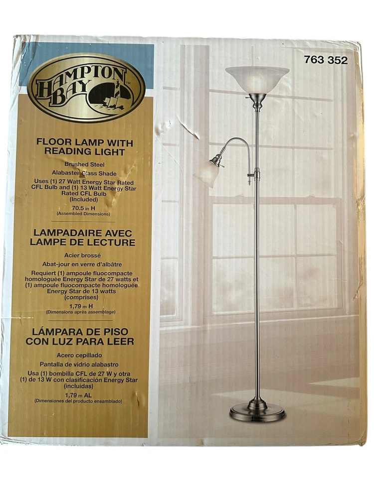 Hampton Bay 70.5 in FLOOR LAMP W/READING LIGHT ALABASTER GLASS SHADE 763 352