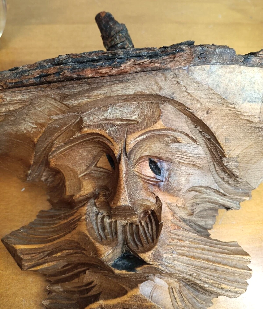 This fun folk art tree carving measures 8" in height and 9" in width and its widest. It does have a place for hanging on the back and initials. Please see all photographs as they are part of the description. Shipped with USPS Ground Mail. F41