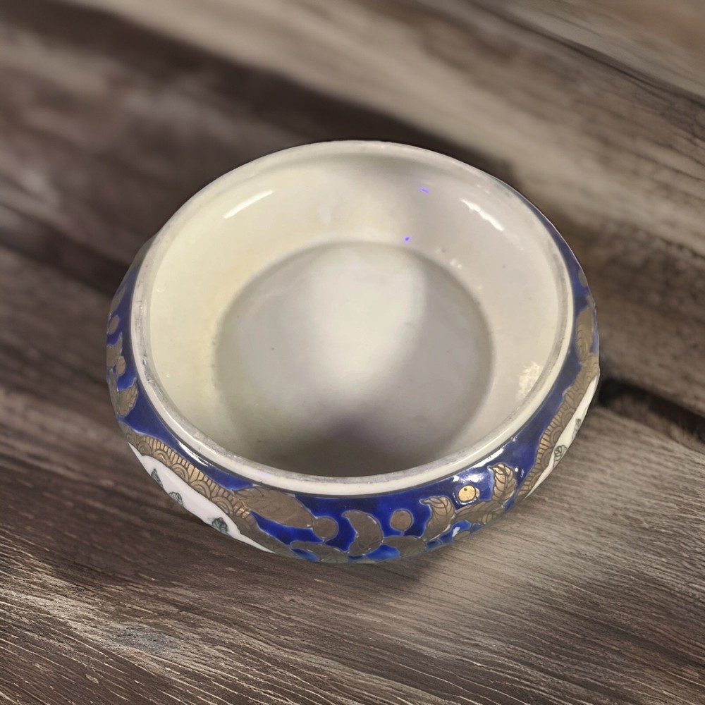 This hand-painted pink peonies porcelain decorative Chinese sauce bowl is a beautiful collectible featuring a design by Murata Art. Originating from Macau, this Asian-style bowl showcases intricate pink peonies on its surface, adding an elegant touch to any decor. Made from high-quality porcelain, this unique piece combines artistry and functionality, making it a charming addition to any collection or as a decorative item in a home.