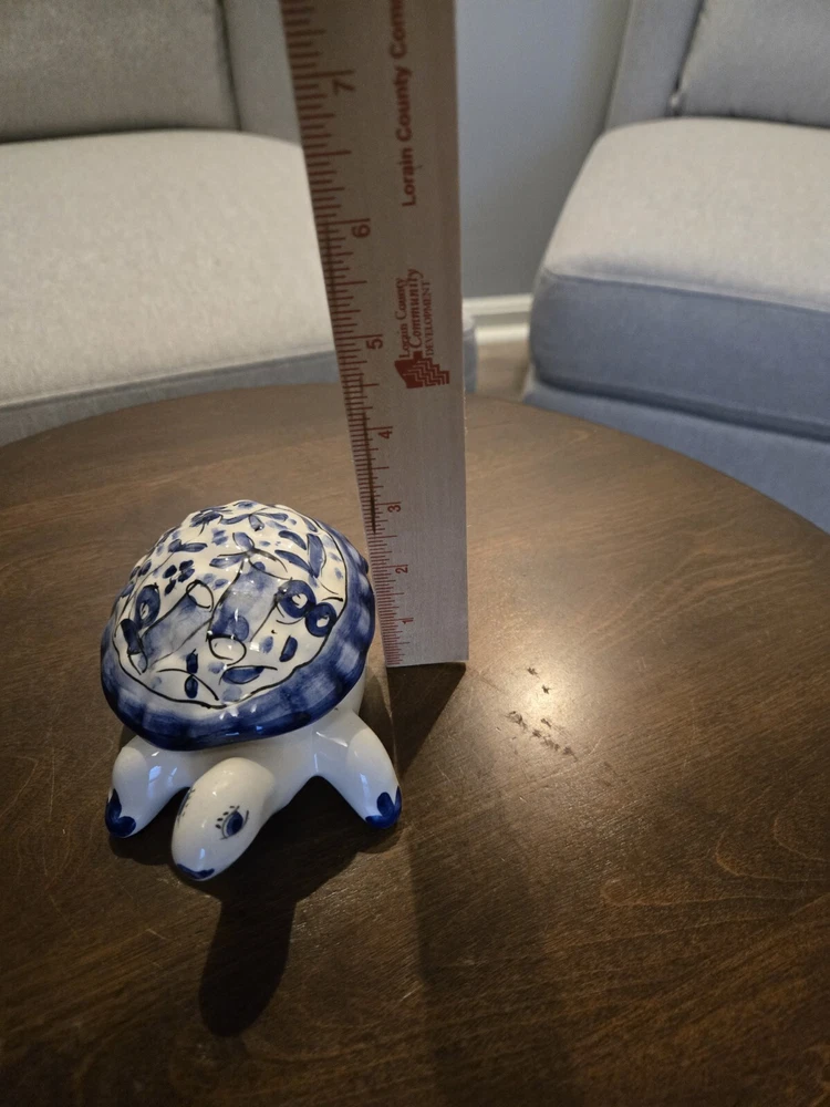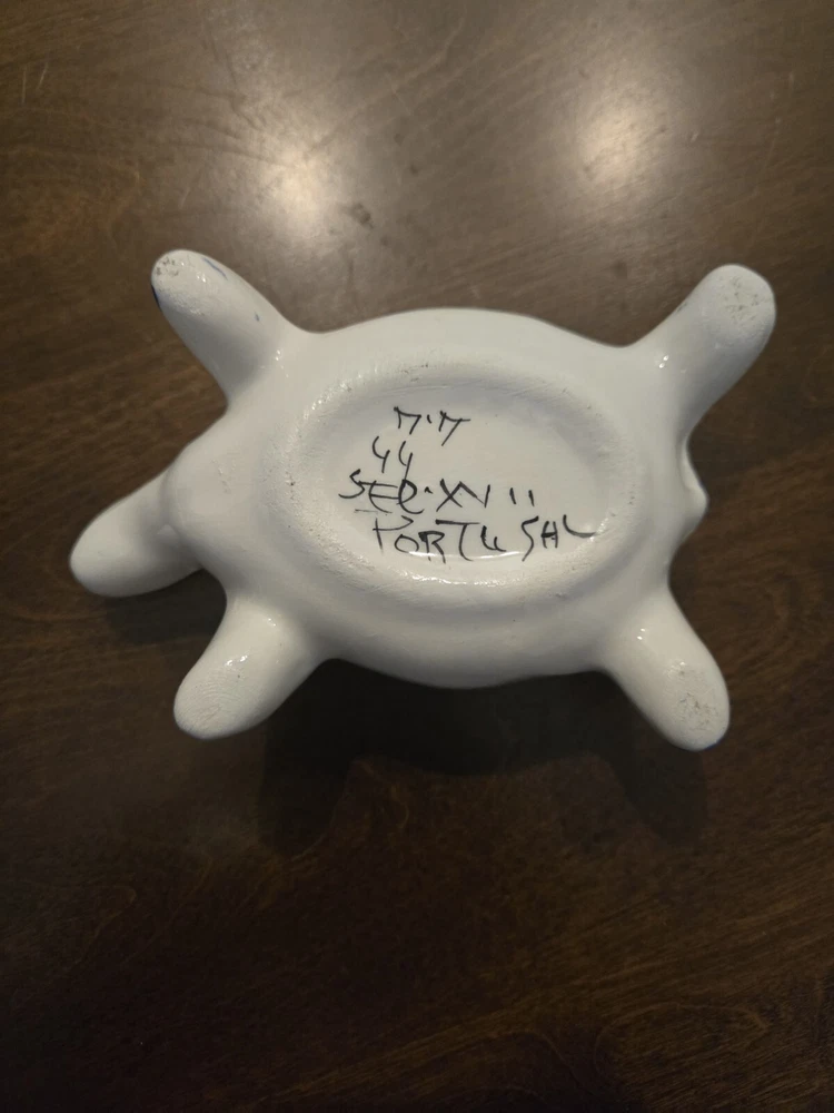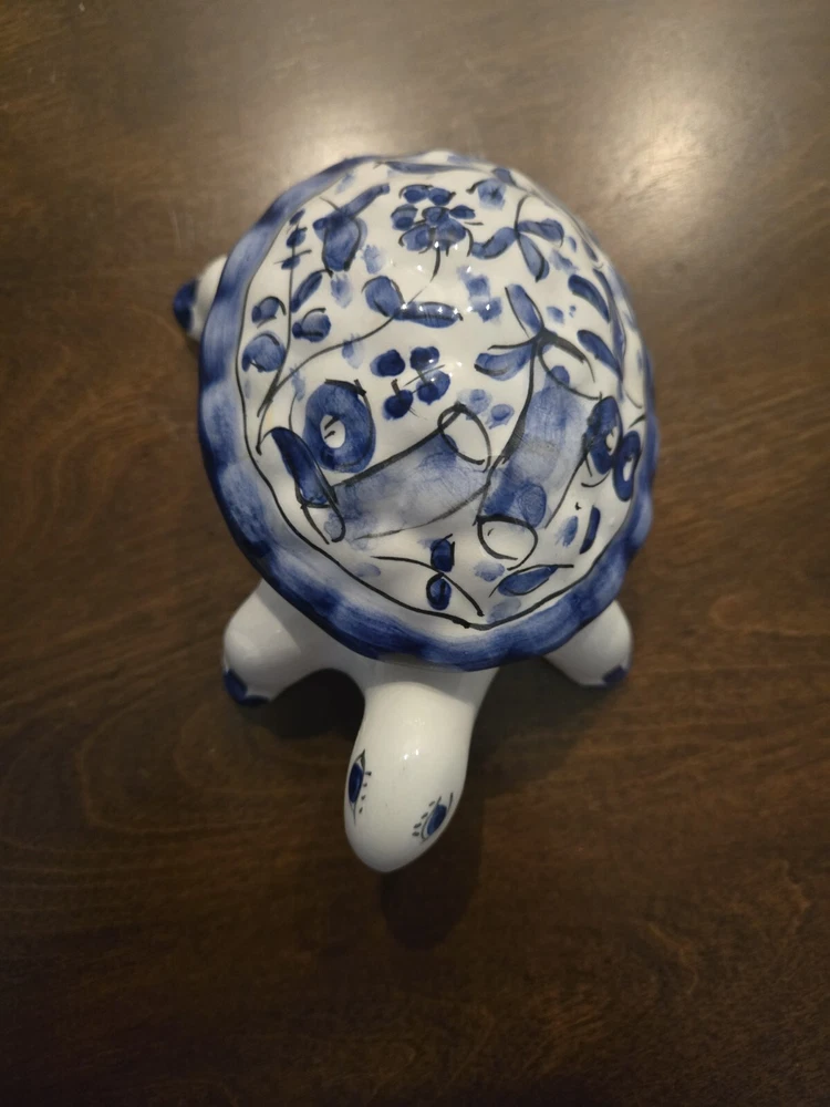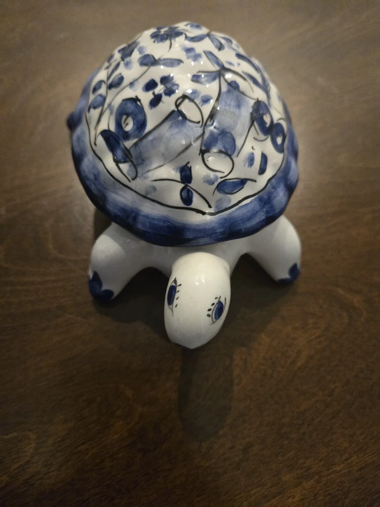 This beautiful trinket box is a true work of art. Crafted in Portugal from high-quality porcelain, it features a delightful hand-painted turtle design. The box is perfect for storing small treasures and trinkets, and will add a touch of elegance to any room. The intricate details of the turtle design make this box a true collector's item. Whether you're a fan of boxing or simply appreciate beautiful decorative pieces, this trinket box is sure to impress. Add it to your collection today and enjoy the beauty and functionality of this exquisite piece.