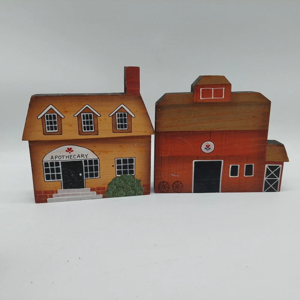 Hand Painted Wood House Barn Store Shelf Sitters Decor Lot Of 8