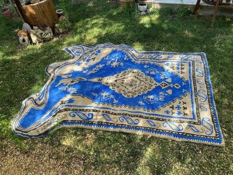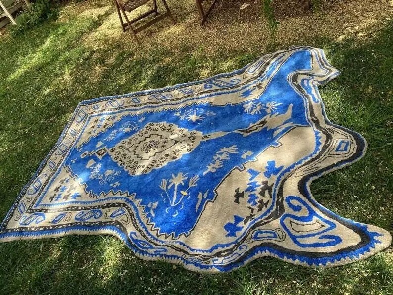 Melting Oriental Rug-Blue, Hand tufted 100% Wool Soft Area Rug Carpet Product Details-: • Product Type: Hand-Tufted Rug • Craftsmanship: Handmade using a special tufting gun • Material: High-Quality Wool and Cotton • Features: Soft, Durable, Elegant, Unique • Suitable For: Living Room, Bedroom, Office, Decorative Use • Ideal As: Area Rug, Handmade Gift, Meditation Rug Key Information-: • Hand-Tufting Process: Yarn loops are pushed through a pre-woven backing, with the pile trimmed to the desired length for a softer feel. • Color Disclaimer: Images show the most accurate color, but variations may occur due to screen differences. Patterns and colors may vary by size. Feedback Policy-: 1. Please leave feedback based on your transaction experience. 2. For any issues, contact us before leaving negative/neutral feedback. We aim to resolve all problems. Terms and Conditions-: 1. All products are thoroughly checked before shipping. 2. For defective items, contact us immediately for a prompt solution. 3. Import charges/fees are the buyer's responsibility. 4. Ensure your address and contact details are accurate when placing an order. 5. Feel free to reach out for bulk or custom orders. Shipping Details-: 1. Orders are shipped promptly after payment clearance. 2. Delivery usually takes 10-20 business days. 3. Free shipping worldwide. Thank You for Visiting! Feel free to contact us with any questions or custom requests.