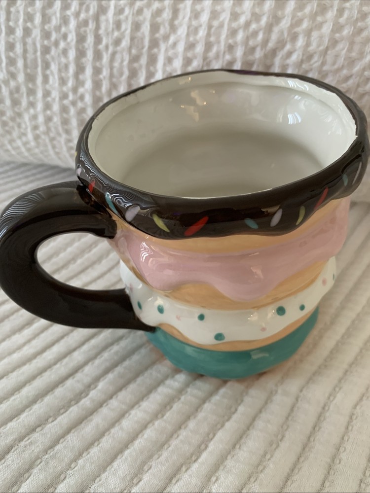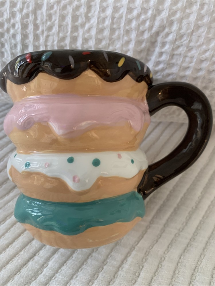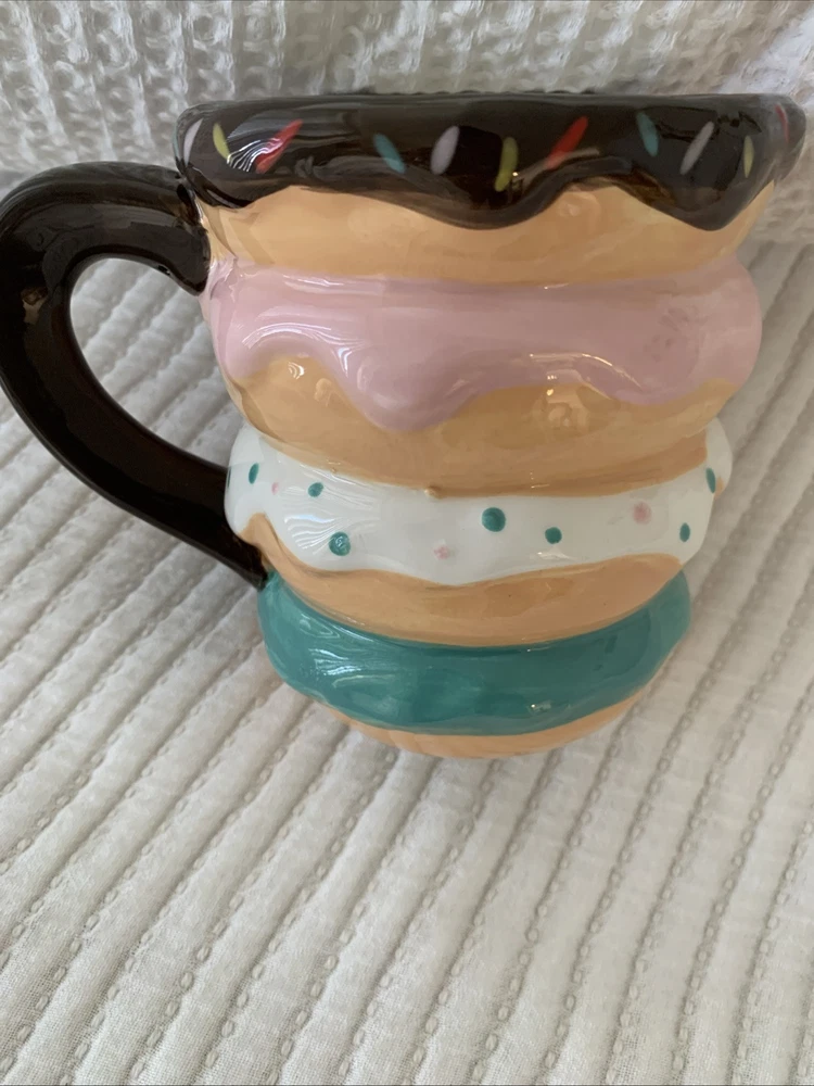 This unique and eye-catching mug features a hand-painted design of stacked frosted donuts, making it a great addition to any kitchen or collection. The ceramic mug has a capacity of 20oz and is suitable for hot or cold beverages. It is also microwave and dishwasher safe, making it both convenient and easy to use. The mug is a limited edition item, with only three units available, and is perfect for any occasion. The mug measures 4 inches in height and 6 inches in width, and has a modern style with a novelty pattern. It is a great gift for any fan of the One Piece franchise or anyone who loves bakery-themed items.