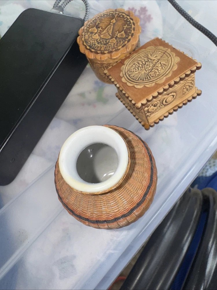 $ 6.34Vintage Slag Stained Glass White Pink Rose Small Hinged Trinket Jewelry Box..AI.