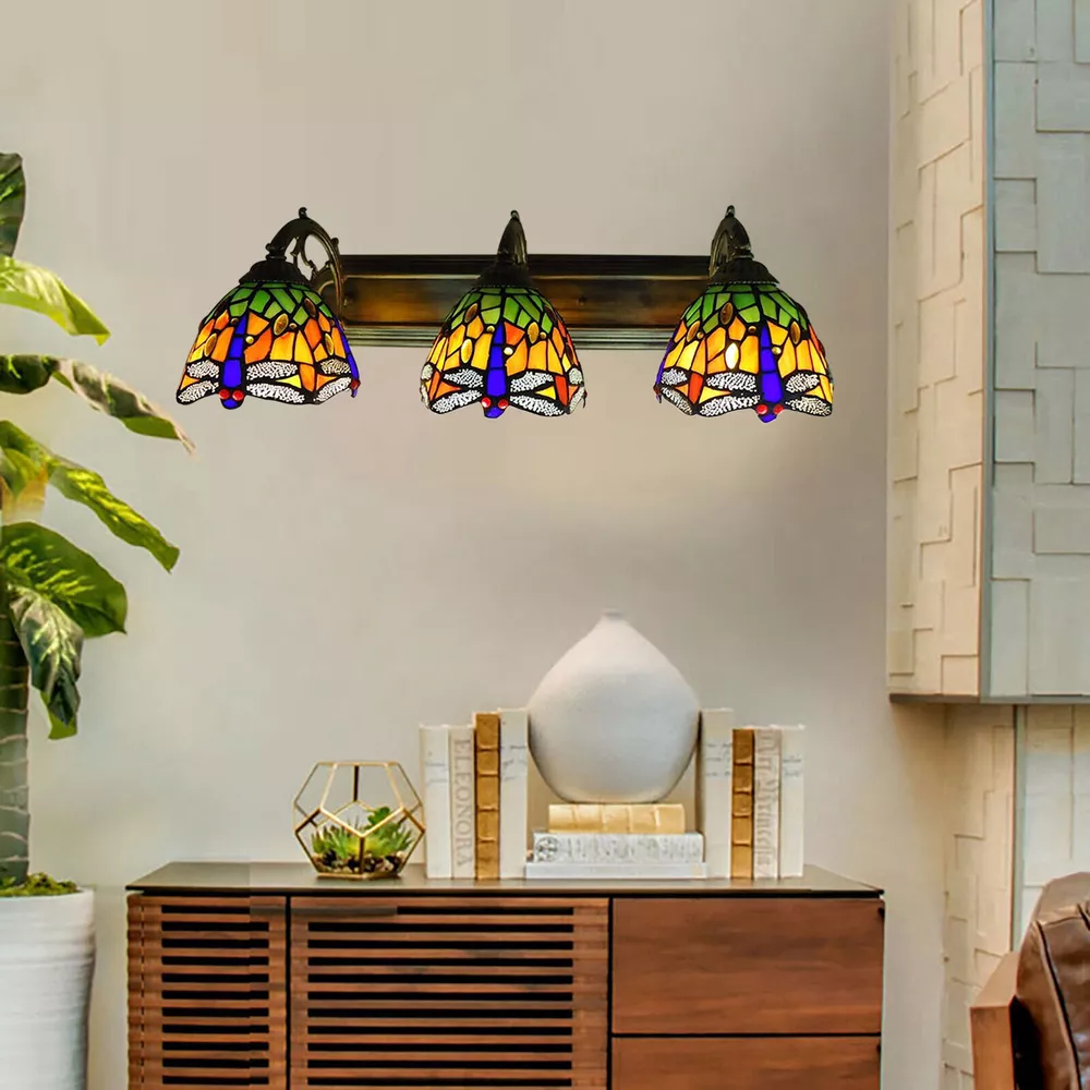Specifications: Category: Sconce Lighting Lighting Theme: Dragonfly Shape: Dome Finishes: Bronze Finish Colors: Blue, Green, Orange Materials: Art Glass, Metal Lighting Styles: Casual, Shabby Chic Switch Types: Hardwired Lighting Types: General Lighting,LED Lighting Bulb Base: E27 Number Of Lights: 3 Lights Bulb Included Or Not: Bulb Not Included Bulb Type: LED/Incandescent/Fluorescent Shipping Weight: 3.5KG 💖 WELCOME 💖 Specifications: Category: Sconce Lighting Lighting Theme: Dragonfly Shape: Dome Finishes: Bronze Finish Colors: Blue, Green, Orange Materials: Art Glass, Metal Lighting Styles: Casual, Shabby Chic Switch Types: Hardwired Lighting Types: General Lighting,LED Lighting Bulb Base: E27 Number Of Lights: 3 Lights Bulb Included Or Not: Bulb Not Included Bulb Type: LED/Incandescent/Fluorescent Shipping Weight : 3.5KG Features&Highlights: 【Bulb Type】3* E27, bulbs are not included, compatible with LED, incandescent, fluorescent. 【Dimension】Shade diameter: 16cm (6.3"), board length: 60cm (23.6"), width: 12cm (4.72"), lamp height: 22cm (8.66"). 【Material】Adopts handmade stained art glass shade and metal base, this exquisite Tiffany style wall mounted vanity light has high light transmission, high temperature resistance and easy to clean. 【Retro Style】Handmade lamp shade with colorful design, romantic and soft lighting, Tiffany style adds aesthetics and visual beauty to your decor. Description: This over mirror light is not only home furnishing, but also can be kept as collectibles, perfect for bathroom, living room, study room, bedroom, restaurant, bar, hotel, etc. Dimensions: Shade diameter: 16cm (6.3”) Board length: 60cm (23.6”) Board Width: 12cm (4.72”) Lamp height: 22cm (8.66”) Package Includes: 1 X 3-Light Wall Sconce without Bulbs Payment Delivery details Terms of sales About us Contact us Payment We accept ebay payment 。 Fees such as import duties, taxes are not included in the item price or shipping costs. These charges are the buyer's responsibility. Delivery details Shipping: 2-9 working days to: USA Terms of sales We maintain high standards of excellence and strive for hundred percent customer satisfaction. Feedback is very important to us. We hope that you contact us immediately before you give neutral or negative feedback, so that we can address your concerns. It is impossible to address issues if we do not know about them! About us Your satis faction is our ultimate goal. We work hard to earn your trust and future business. Our certified technicians have tested each item before shipping. The unit comes with 1 year limited warranty on all manufacturing defects. a) If you receive a defective item, you may return it or ask for a discount. Please contact us within 14 days after you receive the package. b) What you returned must be intact and in its original packaging as re? u. Customer is responsible for shipping costs of the returned item. c) We will cover the cost of shipping back t with the shipping rate indicated in the registration page. We will send you a new unit or refund the full payment you paid. Thank you. Contact us Business Hour Business Hour: Monday To Friday: 8:30 AM to 5:00 PM (Beijing China time) Due to time zones, our reply to your questions may not be immediately. But within above working time, we will reply your email within 24 hours. If it's non-workdays, please kindly be patient and wait till Monday. Please contact us with ebay message. Please feel free to contact us if you have any questions. Monday To Friday: 8:30 AM to 5:00 PM (Beijing China time) Due to time zones, our reply to your questions may not be immediately. But within above working time, we will reply your email within 24 hours. If it's non-workdays, please kindly be patient and wait till Monday. Please contact us with ebay message. Please feel free to contact us if you have any questions.