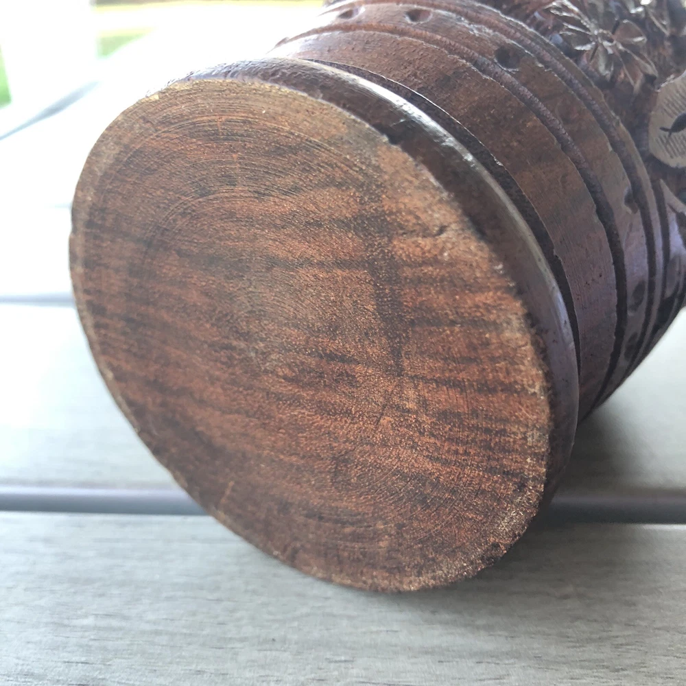 Handcrafted Carved Wood Floral 5” Vase Cup. Great detail floral print Carved wood Use as cup , vase or holder