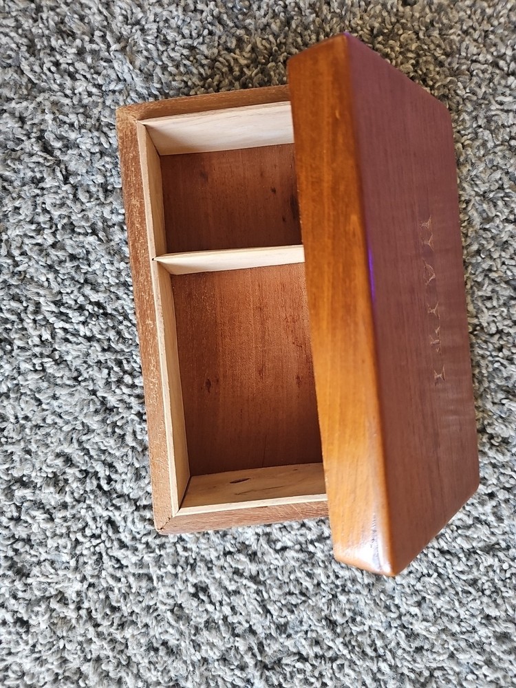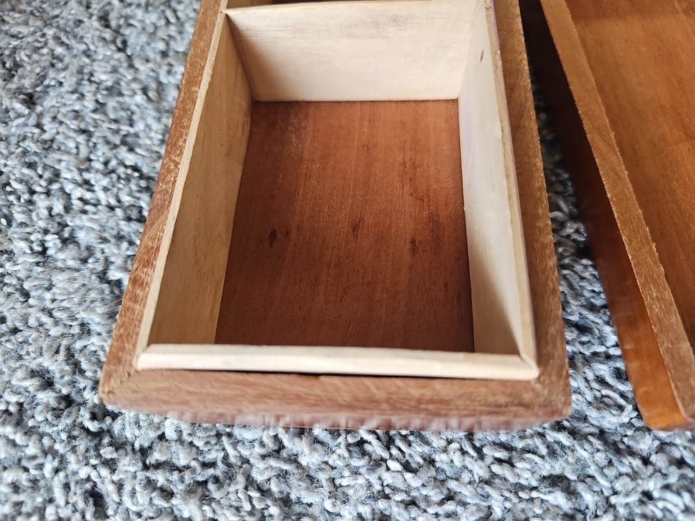 Vintage handcrafted wooden trinket box with ornate detailing