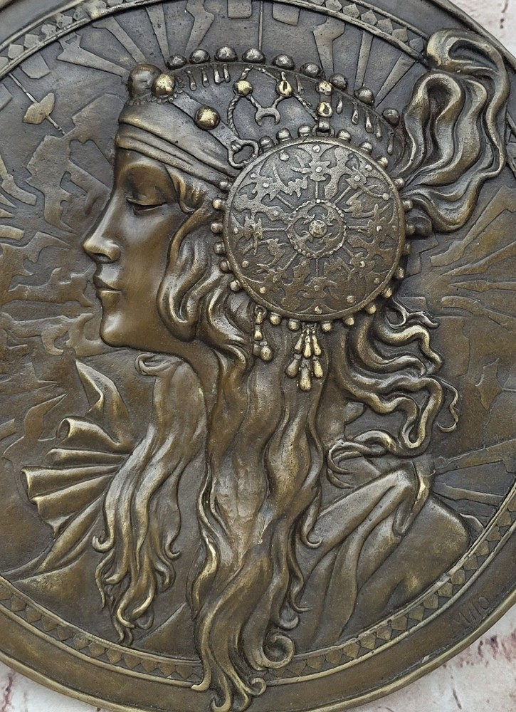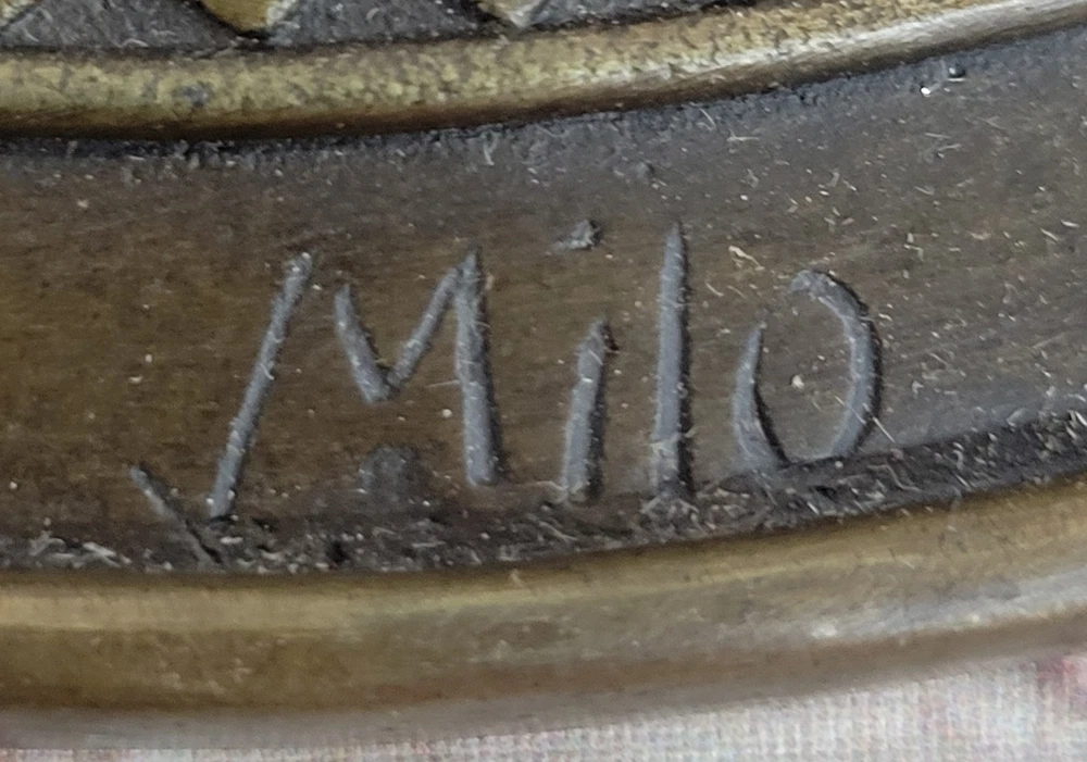 Condition : This sculpture is in perfect condition. Bronze Dimensions: Height 12" X Width 12"nbsp; nbsp; Weight:7 LBSnbsp;nbsp; Inventory:48Y10094384 Introducing a stunning bronze medallion wall piece showcasing the profile of a captivating woman. Her flowing hair gracefully cascades past her shoulders, while a simple headpiece adorns her elegant silhouette. With a diameter of approximately 12 inches, this artwork strikes the perfect balance between being a captivating focal point and a valuable addition to any collection of wall sculptures. Crafted using the esteemed lost wax method, this sculpture bears the signature of the renowned artist, Milo. Immerse yourself in the allure of this exquisite bronze medallion. The delicate features of the woman's profile and the intricate detailing bring a sense of beauty and elegance to any space. Whether it takes center stage as a focal point or complements an existing collection, this piece captures attention and sparks admiration with its refined craftsmanship. Experience the mastery of Milo's artistry through this exceptional bronze sculpture. The lost wax method ensures the utmost precision and quality, while the artist's signature guarantees authenticity. Don't miss the opportunity to own a true masterpiece that effortlessly blends artistry and aesthetic appeal, infusing your surroundings with timeless beauty and sophistication. Fine Rare French Bronze Statue Bas Relief Sculpture Figure Figurine Art Nouveau Video will open in a new window Using the eBay App? Paste link into a browser window: [isdntekvideo]
