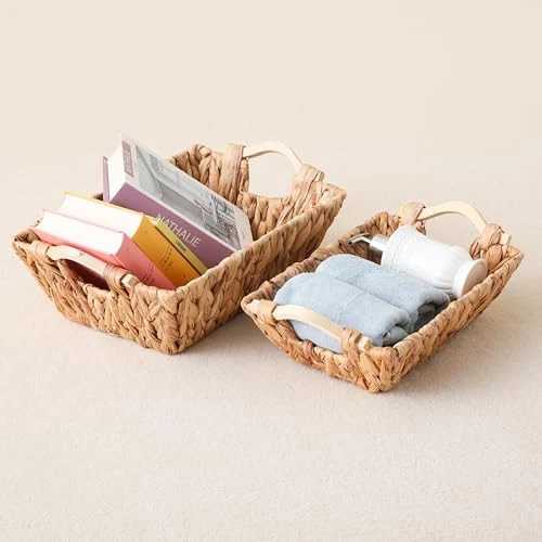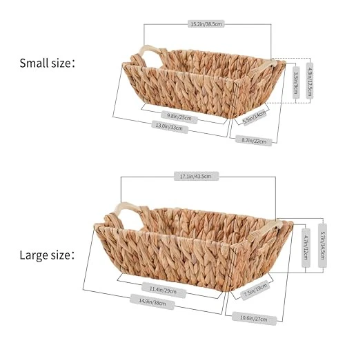 Menu 1. We require immediate payment. 2. We currently accept payment via eBay managed payments only. 3. Once payment is cleared, we will dispatch your shipment within 1-3 business days. Please refer to the "Shipping" tab for more information regarding shipping speed to your destination. Handcrafted Water Hyacinth Basket with Wooden Handles, Wicker Shelf Basket for Storage and Organizing, Rectangular, 1 Pack, Small Size Product description Natural water hyacinth, healthy and environmentally friendly. Suitable for various places: living room, bedroom, laundry room. Hand woven, with iron frame support and reinforced joints, stable and durable. The surface has been treated to be moisture-proof, and the handles have been manually polished. L: 15.2’’ (38.5m); W: 8.7’’ (22cm); H: 4.9’’ (12.5cm); Weight: 0.9lbs (0.4kg). Notice1: All values are the dimensions of the outer edge. The inner dimensions will be smaller accordingly. The average thickness of the product is 1.5-2cm. All dimensions may vary due to handmade and manually measured. Notice2: Uneven color and rope ends are normal and do not affect functionality. PLEASE MESSAGE US IF YOU HAVE ANY OTHER QUESTIONS, AND MANY THANKS FOR READING ALL OF THIS. Copyright ©#. All Rights Reserved.