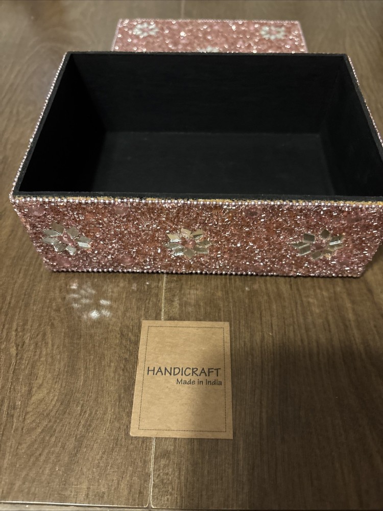 Size:MediumEra:21st Century (2000-Now)Country/Region of Manufacture:IndiaMaterial:WoodEngraved:NoType:BoxPackaging:BoxCollection:Keepsake BoxesItem Width:7inHandmade:YesCustomized:NoColor:PinkItem Height:3in.Finish:BeadedOriginal/Reproduction:OriginalItem Length:7.25 in