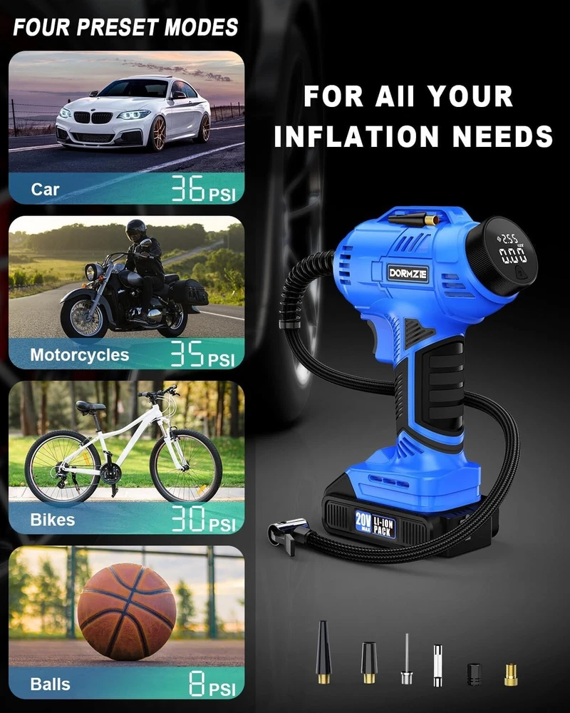 Handheld Air Pump 150 PSI - Rechargeable Tire Inflator for Cars, Bikes, & Balls ‹ › ‹ › ‹ › ‹ › ‹ › ‹ › ‹ › ‹ › Handheld Air Pump 150 PSI -Rechargeable Tire Inflator for Cars, Bikes, & Balls Features: Powerful 20V rechargeable Li-ion battery for quick and efficient tire inflation. Constructed with a robust metal cylinder and gear, operating with 2x faster inflation speed. Maximum pressure of 150 PSI; works continuously for up to 20 minutes. Auto shut off feature upon reaching target pressure to prevent overinflation. Clear Digital Pressure Gauge with 4 unit switches (BAR, KPA, PSI, KG/CM2) for easy monitoring. Includes a dual power solution – a 20V battery and a 12V car power adapter. Versatile for various inflation needs: cars, motorcycles, bicycles, sports equipment, and more. Compact and portable design for easy storage in your vehicle. Benefits: Enjoy the freedom of cordless inflation with enhanced power and efficiency. Set your desired air pressure effortlessly and accurately every time. Versatile usage keeps you prepared for any inflation task while on the go. Compact design ensures you can easily store it in your vehicle without hassle. Comes with all necessary accessories for your convenience. Why choose our Handheld Air Pump? Experience the convenience and efficiency of our Handheld Air Pump with a maximum pressure of 150 PSI, equipped with a high-performance 20V rechargeable battery for portability. Designed for quick inflation, this tire inflator ensures you're ready for any pump job, whether it's your car, bike, or balls. The auto shut-off feature, digital gauge, and dual power options empower you with peace of mind and precision. Don't let deflated tires or sports equipment hold you back—choose our Handheld Air Pump today and enjoy worry-free inflation wherever life takes you! Shipping Free & Fast Shipping - We offer free shipping to most of the USA with a normal delivery time of 3-7 days. However, due to the current situation, additional delivery time (up to 3 weeks) may be required for some items. Alternative Carriers - We may use alternative carriers (e.g. USPS, FedEx, UPS, etc.) to ensure your package arrives safely and on time. Due to the use of multiple carriers, we are unable to provide a tracking number automatically. Handling Time - Orders are processed and shipped within 1-2 business days of receiving cleared payment. Shipping Restrictions - Shipping to Alaska, Hawaii, Puerto Rico, Guam, and other US territories may incur shipping charges or delivery restrictions. Please contact us before ordering, or your order can be refunded/cancelled. State Restrictions - There may be restrictions based on your state of purchase. For example, certain items may not be shipped to California due to state regulations. Contact for Tracking Updates - If you require tracking updates or have any concerns about the delivery of your order, please feel free to contact us, and we will be happy to assist you. Return 30-Day Hassle-Free Returns - We want you to be completely satisfied with your purchase. If you are not, you can return the item within 30 days of receiving it for a full refund or exchange. Easy Return Process - To start a return, simply contact us and we will provide you with a prepaid return shipping label and detailed instructions. Restocking Fee - There are no restocking fees for returns. However, the buyer is responsible for return shipping costs if the return is not due to a seller's error. Refund Processing Time - Refunds will be processed within 5 business days of receiving the returned item in its original condition. Payment We accept all major credit cards, PayPal, and Apple Pay for your convenience. Your payment information is secure and encrypted to ensure a safe and seamless transaction. Please complete your payment within 3 days of purchase to avoid any delays in shipping. Feedback Your feedback is extremely important to us. We strive to provide the best products and customer service possible. If you are satisfied with your purchase, please take a moment to leave us a positive review. If you have any concerns or issues with your order, please contact us before leaving negative feedback. We are committed to resolving any problems and ensuring your satisfaction. Contact Us If you have any questions or concerns, please feel free to reach out to our customer support team. You can contact us through the eBay messaging system. We are available Monday to Friday, 9:00 am to 5:00 pm EST, and we will do our best to respond to your inquiry within 24 hours. Buy it now and enjoy a pleasant shopping experience! UPC: Not Set Model: Cordless Tire Inflator Item Width: Cordless Tire Inflator Item Length: Cordless Tire Inflator Item Height: Cordless Tire Inflator Item Diameter: Not Set Item Weight: 3.34 lb Unit Quantity: 1 Set Includes: Not Set Brand: Unbranded Type: Portable Air Compressor Portability: Portable Voltage: 20 V Power Source: Battery Powered Maximum Working Pressure: 150 Psi Tank Capacity: Not Set Lubrication Type: Not Set Horse Power: Not Set Tank Material: Not Set Flow Rate: Not Set MPN: Not Set Color: Blue Country/Region of Manufacture: Not Set Manufacturer Warranty: Not Set Unit Type: lb