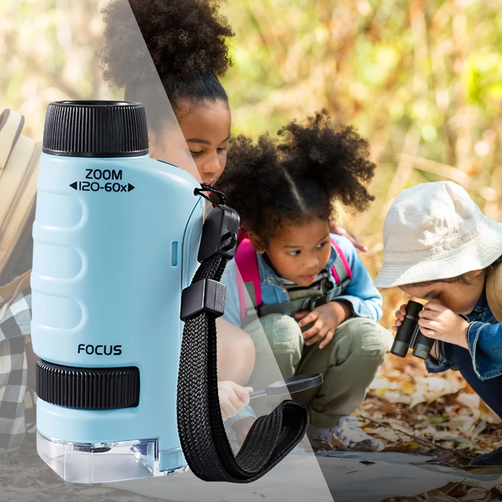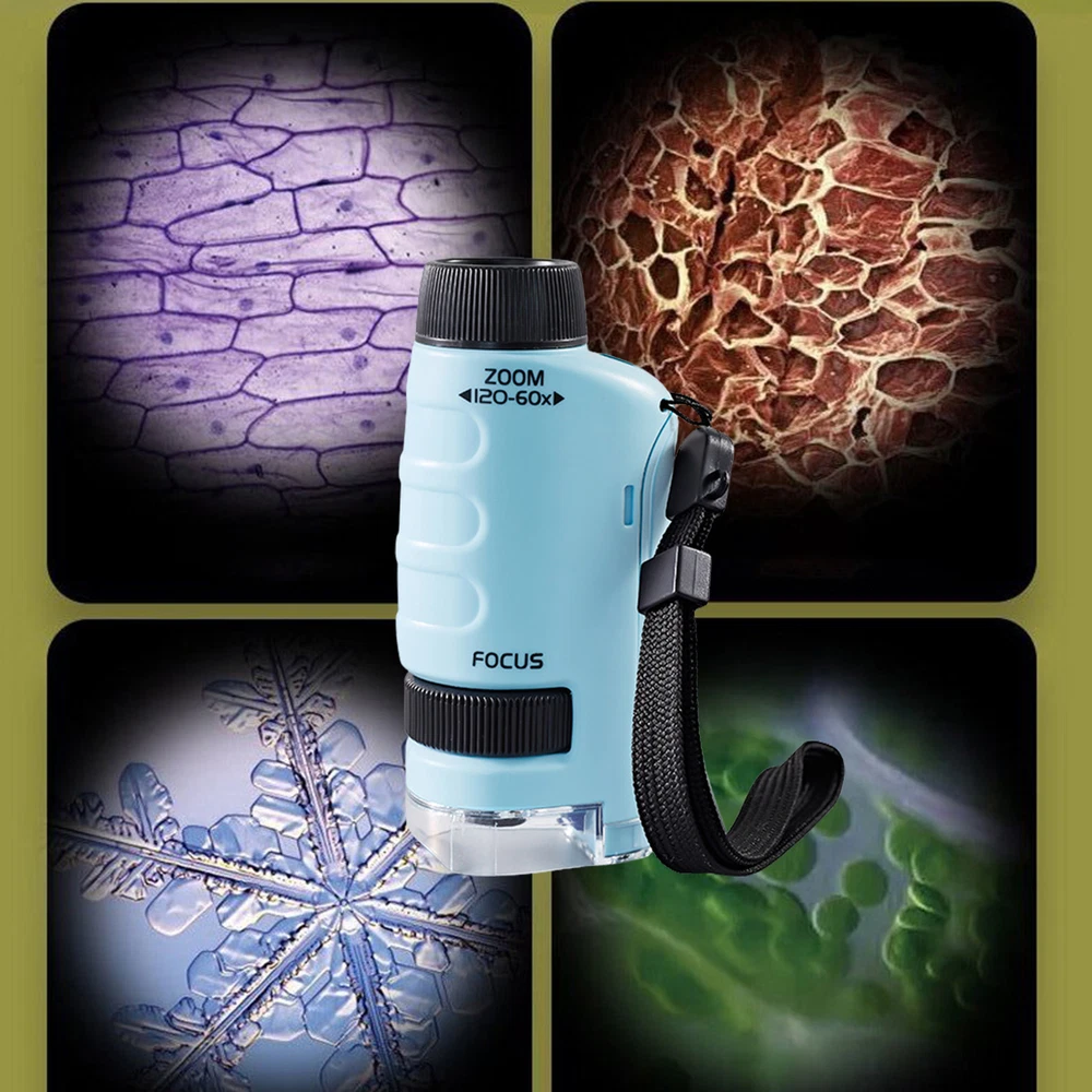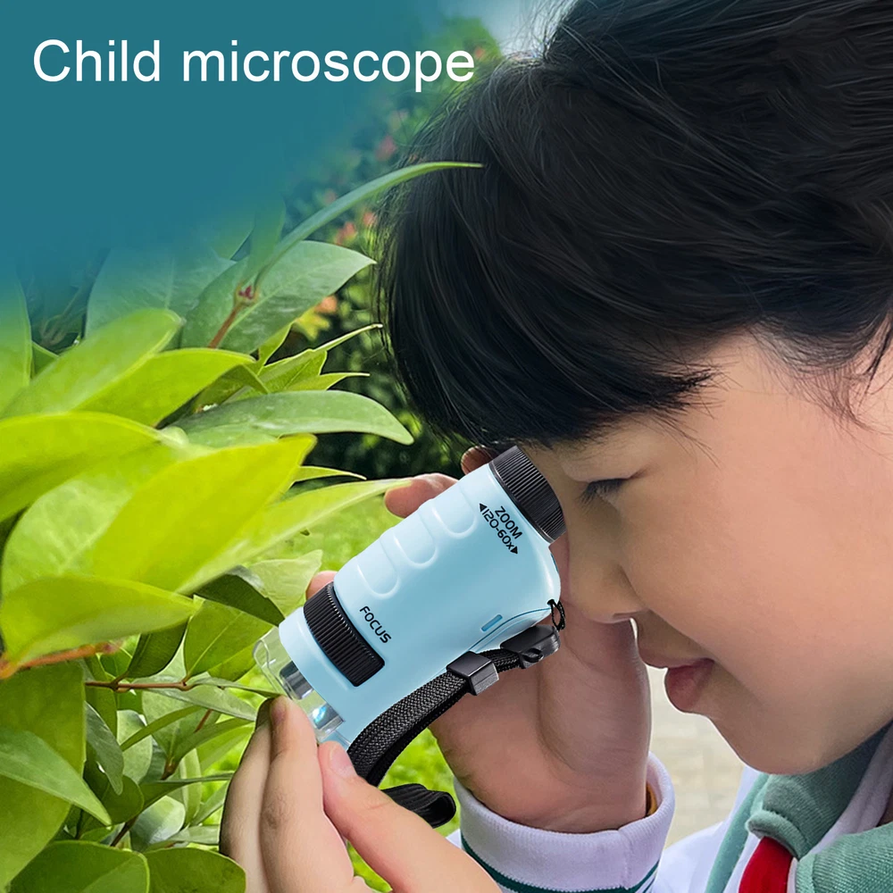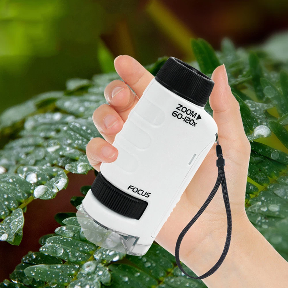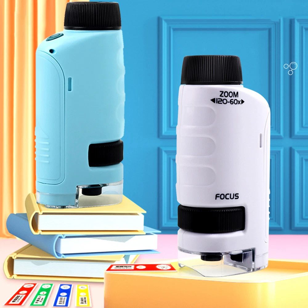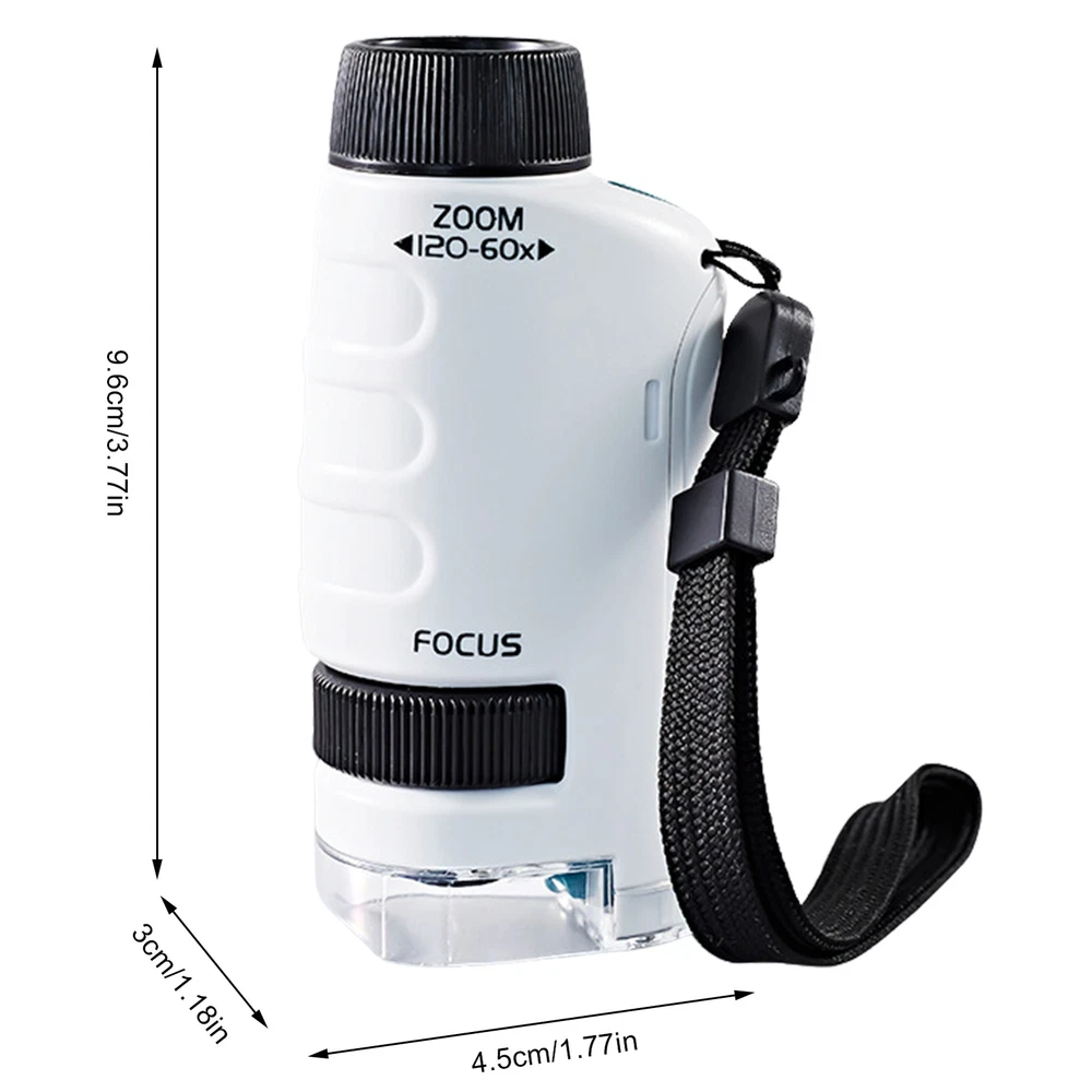 Handheld Magnification Pocket Microscope 60X-120X KP Lens With LED Lighted Kids