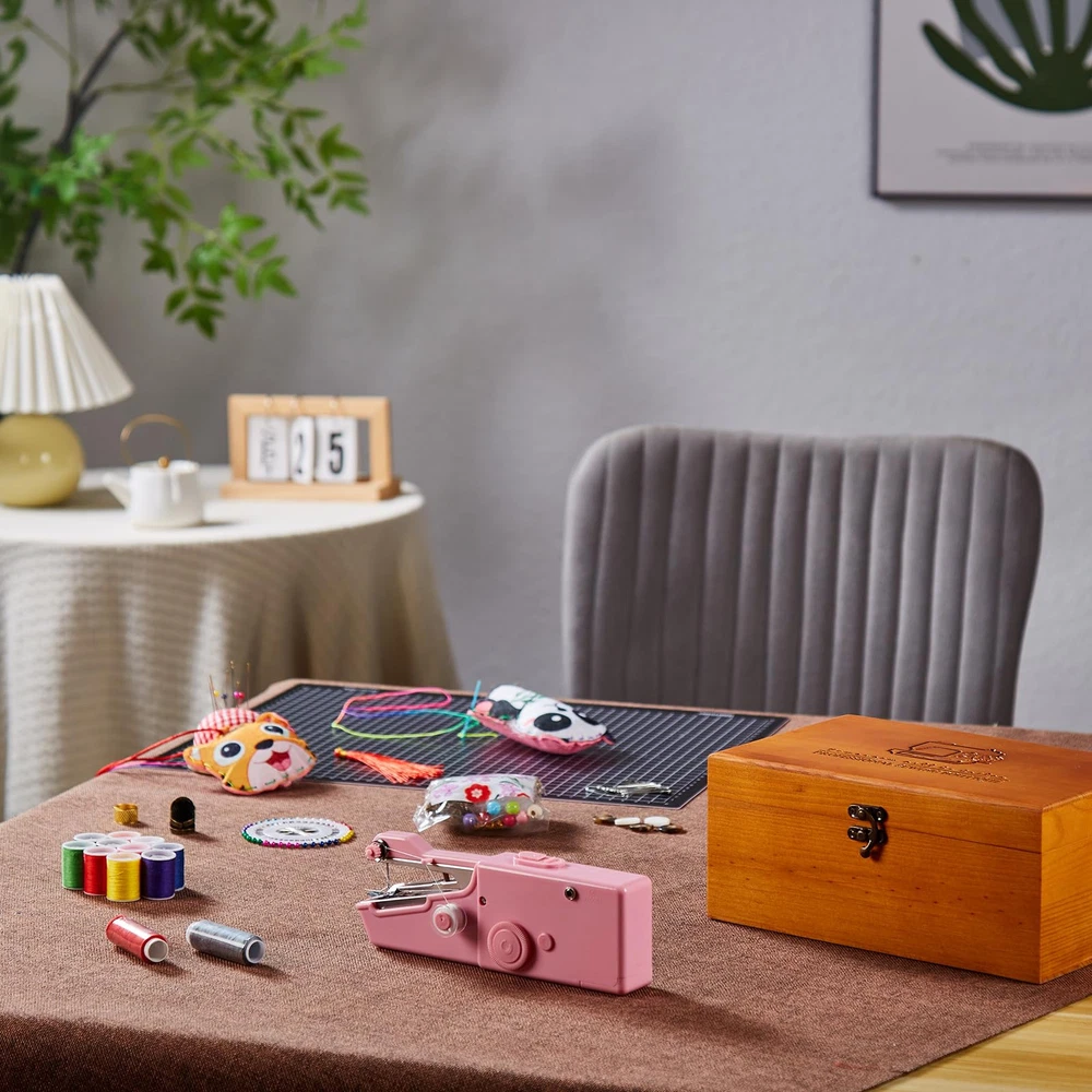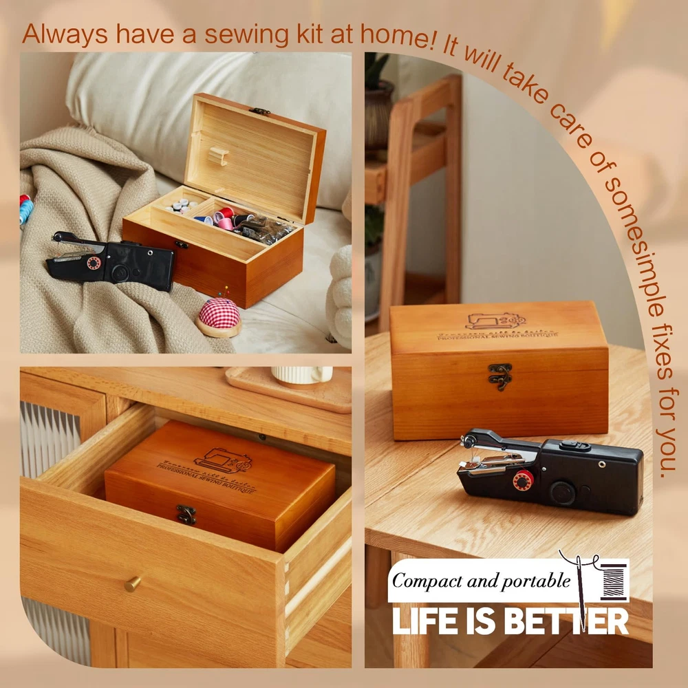 This handheld sewing machine is a game-changer! Super portable and easy to use, it handles everything from delicate silk to tough denim effortlessly. The massive 153-piece accessory kit has everything you need—threads, needles, bobbins, even a cute wooden storage box. Perfect for quick fixes, crafts, or small projects. No cords, no hassle, just smooth sewing anywhere. Love how compact yet powerful it is!