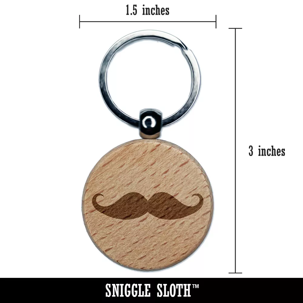 Handlebar Mustache Moustache Silhouette Engraved Wood Round Keychain Tag Charm