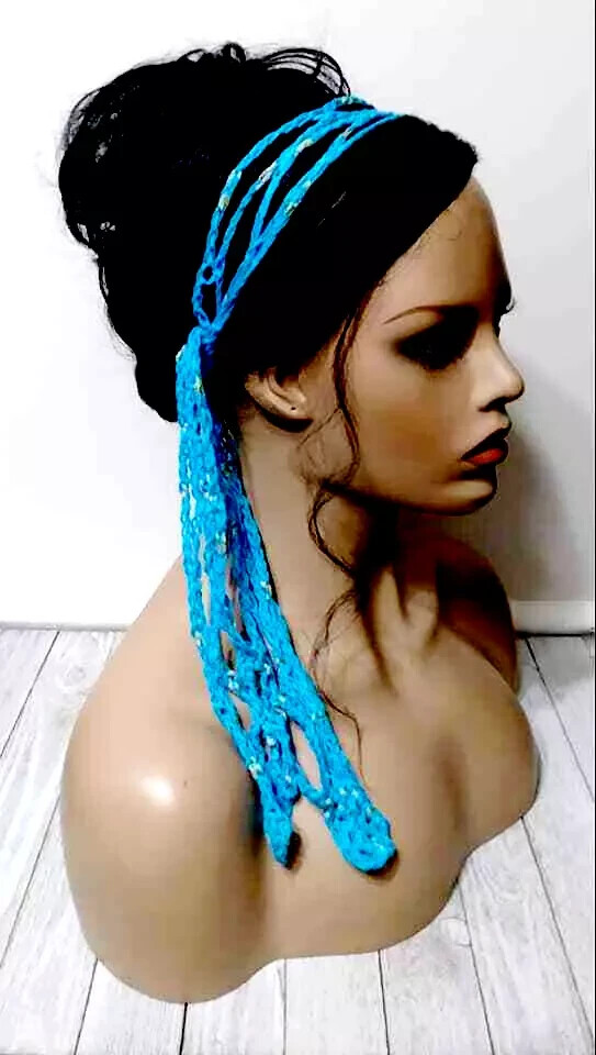 FOR COMBINED SHIPPING PLACE ITEMS IN YOUR CART~ DISCOUNT WILL AUTOMATICALLY COMBINE only one coupon or discount per item Colors may vary with individual screen monitors Wrap your hair up in style with this handmade crochet beautiful hair scarf. This is about 48 inches long unstretched. perfect lightweight hair scarf for warmer weather fashion. hand crafted with a cotton blend yarn. Check out my other items