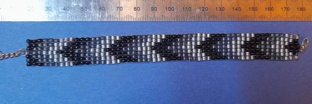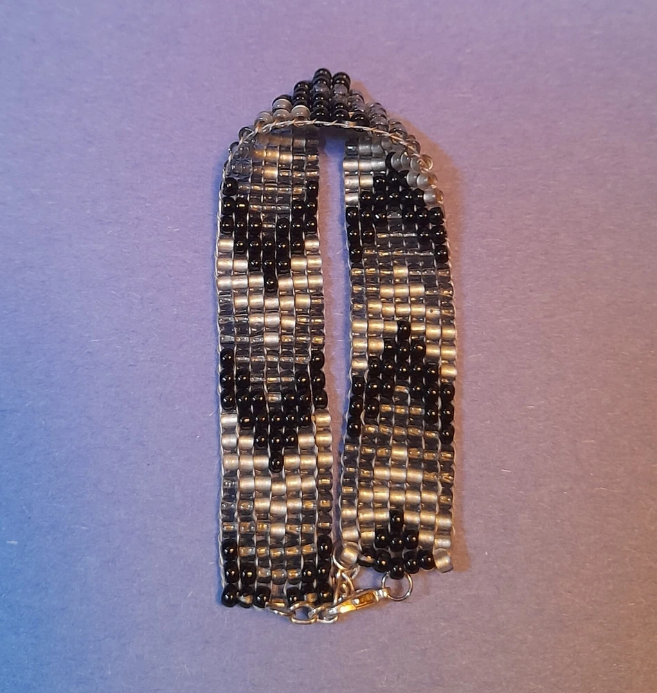Beautiful Handmade Unique Seed Bead Bracelet Lobster Claw Clasp and chain fastening Black, Grey, Silver Chevron Pattern Overall length 190mm Please feel free to ask a question or make an offer