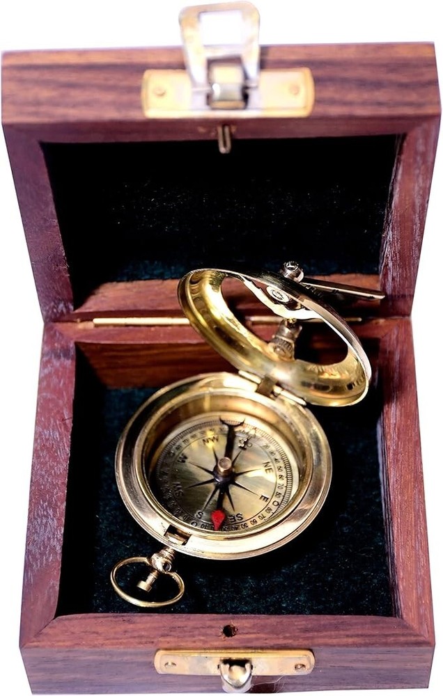 $ 19.33Handmade Brass Pocket Compass with Rosewood Case for Hiking Navigation