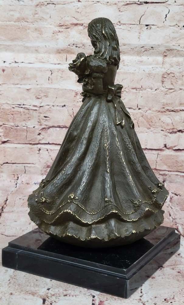 Hand Made Bronze Pageant Girl – Signed Patoue Decorative Art Deco Statue Hand Made Bronze Pageant Girl – Signed Patoue Decorative Art Deco Statue Condition : This sculpture is in perfect condition. Bronze Dimensions with Marble Base: Height 13" x Width 8" Marble Dimensions:8" X 8" Height without base:12" Weight:13 LBS Inventory:24GTS2278342 Celebrate grace and elegance with this limited edition bronze sculpture of a Southern Belle, delicately holding a flower in hand. Signed and numbered by the artist Jean Patoue, this charming young pageant girl embodies timeless beauty and poise, reminiscent of a bygone era of refinement and tradition. Expertly handmade using the revered lost wax method, the sculpture showcases remarkable detail—from the soft flow of her dress to the gentle expression on her face. The rich brown patina enhances the texture and warmth of the piece, making it a standout accent for any fine art collection. Mounted on a solid square marble base, this sculpture brings sophistication to any space and makes a wonderful gift for collectors, admirers of Southern heritage, or lovers of fine bronze art. Shipping Terms : Most of our items are shipped via USPS (United States Postal Service) mail or UPS. Most orders are shipped within 24-48 hours of purchase. Please be aware that not all items are available for USPS shipping due to size and weight. We do ship to Hawaii, Alaska, Canada, Puerto Rico, APO/AE, and U.S. Virgin Islands, however, an additional charge may be required. Please contact us before making any purchases in these areas. For Non-USA customers, you may be responsible for all duty, tax, brokerage fees that may be due upon delivery (shipping costs cover freight charges only). We also ship internationally. Please refer to the "Shipping and Handling" chart for the rates for each area. Payment : We accept just about any form of payment. PayPal, Master Card, Visa or American Express credit cards. Money orders, cashiers checks, and even personal or business checks. For governmental institutions, we will also accept a purchase order. Please understand that for personal or business checks we have to wait for the check to clear (usually 7 days) before shipping. Condition : New Detailed Hand Crafted Hot Cast Bronze Satisfaction Guaranteed. This is Stock Photo, Slight Color Variation!! Listing and template services provided by inkFrog