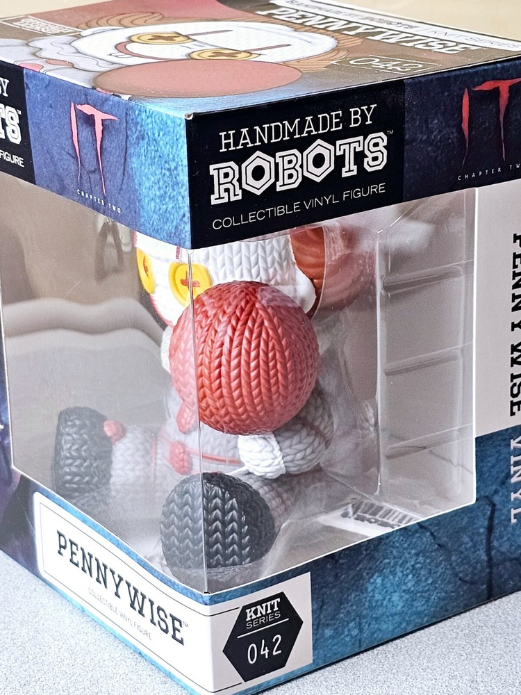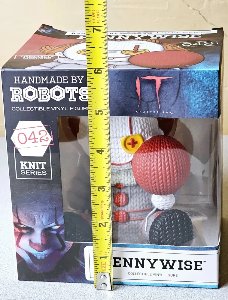 Box shows usual shelfwear , please review pictures before purchasing to better understand the condition of the item. Add Pennywise the Dancing Clown to your collection with this Handmade By Robots IT Chapter Two vinyl figurine. This multicolor full-size figure stands at 5 inches tall and features intricate details that are true to the character's design in the movie "It Chapter Two". The figure comes in its original packaging, which is unopened for added authenticity. This exclusive Made by Robots figure is part of the Knit Series and has the box number 042. It is made of high-quality vinyl material and is suitable for ages 14 and up. The figure is a must-have for any fan of the "It" franchise and is a great addition to any collectible figures and bobbleheads collection.