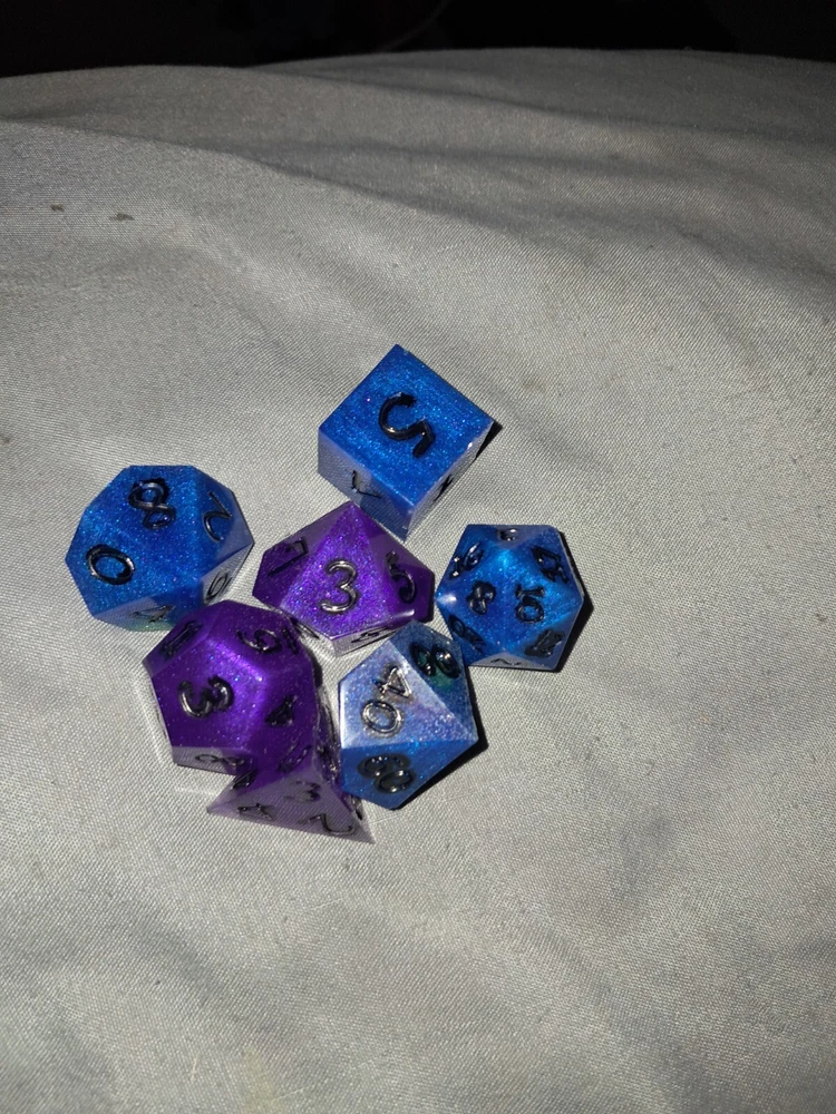 Handmade Epoxy Dice Set Contains dice- D10,D6,D8,D4,D10,D20 and D12 All handmade
