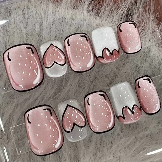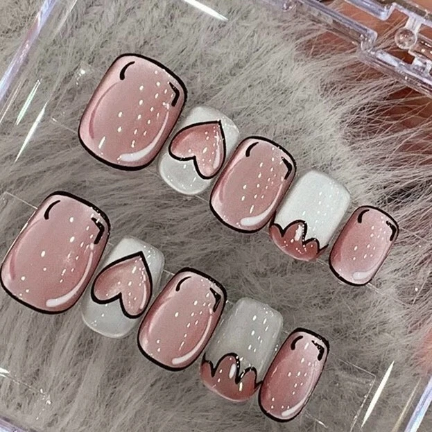 Each set is handmade according to size.Please understand some orders will take longer to ship out.Thanks for support and patience! Please under feel free to contact me with any questions,comments,or concerns!! Handmade Press on Nails Application Steps: (1)Start by preparing your nails: remove any old polish remove any dead skin away from cuticle area to ensure that your nail has a bigger area for the sticker to properly fit for better adherence when nail is applied. (2) Gently file the top surface of you nail to remove any residue prior to applying the Press on Nails. (3) Be sure your nail surface is clean and dry. (4) Select the suitable size of adhesive sticker for your fingernail before you place the sticker (5) Gently remove the top protective layer on the adhesive sticker and place on the press on nail (6) Align the press on nail with your natural nail starting at the cuticle and pressing down towards the tip of your natural nail please remember to hold press on nail for a minimum of 30 seconds to ensure there is no air space between press on and natural nail. Lastly, Enjoy Your Beautiful Nails!!! Handmade Press on Nail Removal Steps: Immerse hand in warm soapy water for a minimum of 2 minutes this will assist in removing the glue sticker while maintaining the condition of the press on nail for re-use. Notes on Handmade Production: Since it is 100% hand customized, especially some complex patterns, there is no way to be the same as the pictures shown. We hope you can understand, thank you for your support, and we will continue to work hard! We have been striving to provide products that satisfy our customers!!!