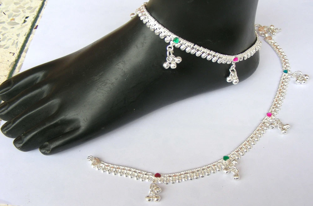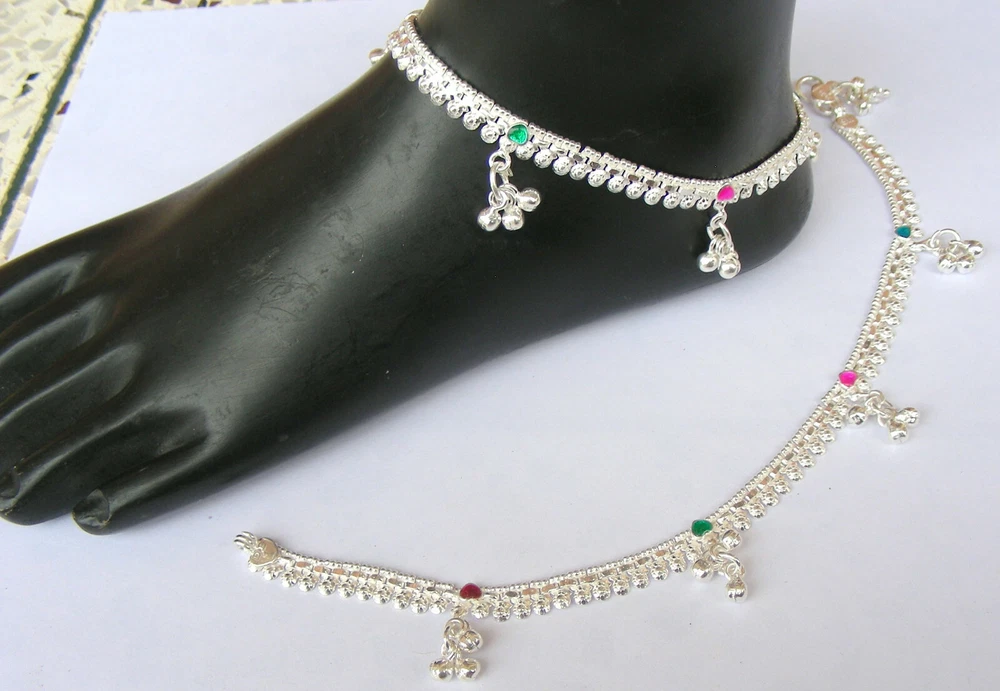 Theme: Fashion & Costumes Color: Silver Colour: Silver Item Length: 8.5'' Main Stone Creation: No Style: Chain UPC: Does not apply Metal: Fine Silver Occasion: Anniversary, Birthday, Engagement Metal Purity: 925 parts per 1000 Main Stone: No Secondary Stone: No MPN: BRIDAL PAYAL Product Type: Anklets gtin13: Does not apply Length (cm): 8.5" Type: Anklet Main Stone Treatment: No Seller Notes: “Indian Payal pure Silver Handmade Anklet Pair 26 Gram 8.5"” Country of Origin: India Brand: Handmade Diamond Colour: No Modified Item: No Closure: Hook Country/Region of Manufacture: India Main Stone Colour: NO STONE Base Metal: Fine Silver