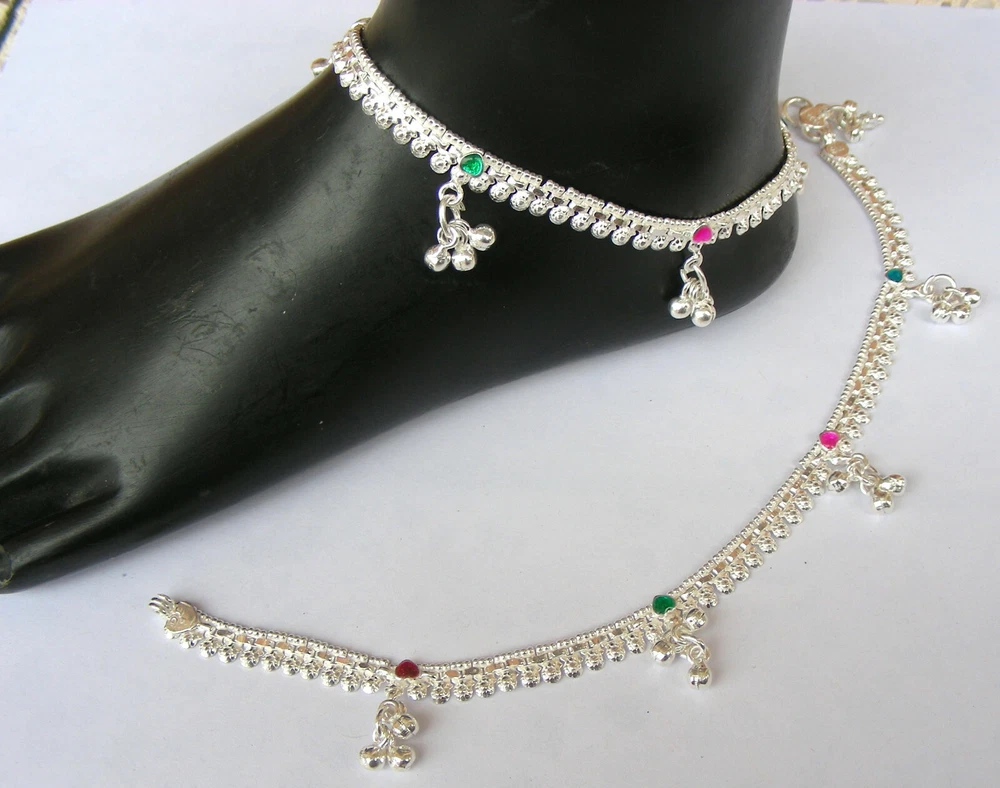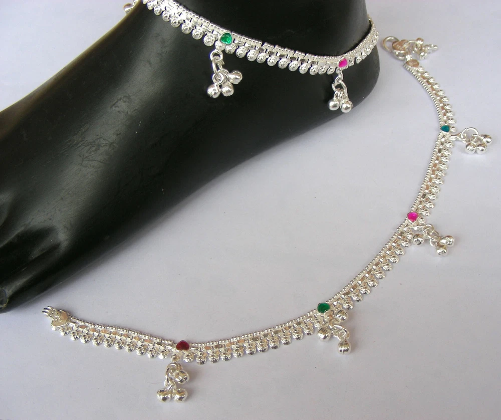 Handmade Indian Payal Fine Silver Anklet Pair 26 Gram 8.5'' P14 FREESHIP
