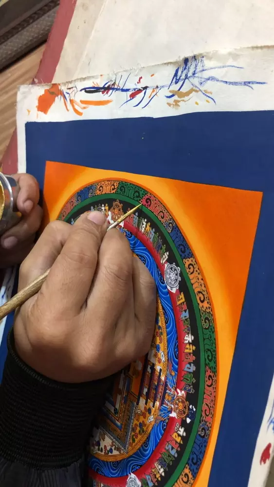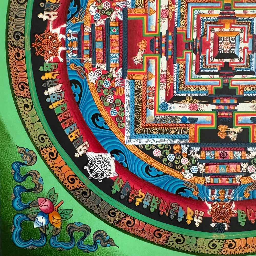 Namaste and Welcome to my Gallery!!! All of the paintings and arts in my gallery are originally handmade and hand-painted by my family members and other local artists who have been practicing their craft for over two decades. My father is Master Artists Nepal with an experience of more than four decades; you can see some of his work in this Gallery. Also you can see some of the beautiful and soulful artwork of talented local artists from Himalayas. ~~Kalachakra Mandala Thangka~~ Kalachakra Mandala is a Sanskrit word for “wheel of time”. The mandala of kalachakra is aerial view of the kalachakra temple, situated in Lhasa and contains 722 Deities, and at its heart on a Lotus flower, a single Buddha: Kalachakra. It is a 5 level structure, each level is represented by a square, and each square is set within the others. In mandala there are six circles of elements: wisdom, space, wind, fire, water and earth. Then we get to different entrance of the body, speech and mind. [Size = 37cm x 37cm] Material Used: • Cotton Canvas • Natural Pigments and colors • Gold leaf ~Excellent for meditation or home/office decor, ~Tibetan Yoga Wall Art ~Genuine 100% hand-painted from Himalayas Please feel free to contact me if you have any question regarding the painting.
