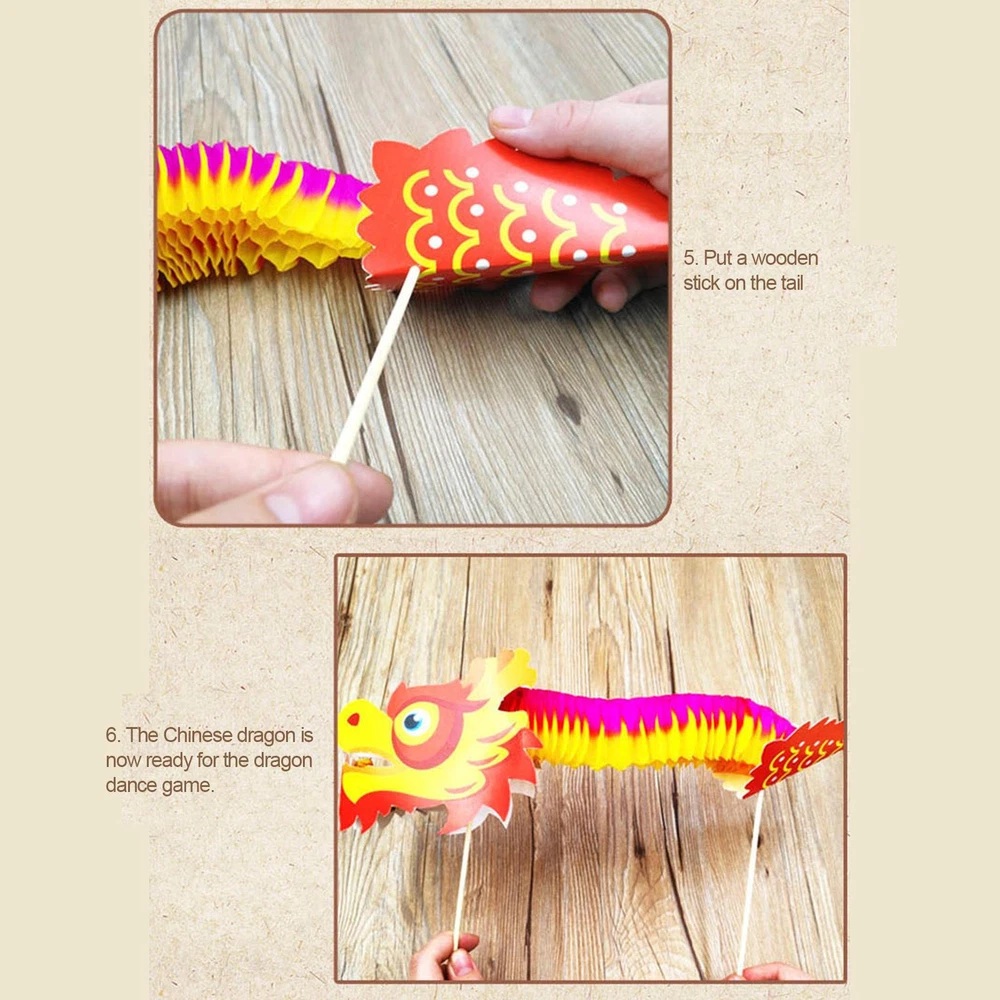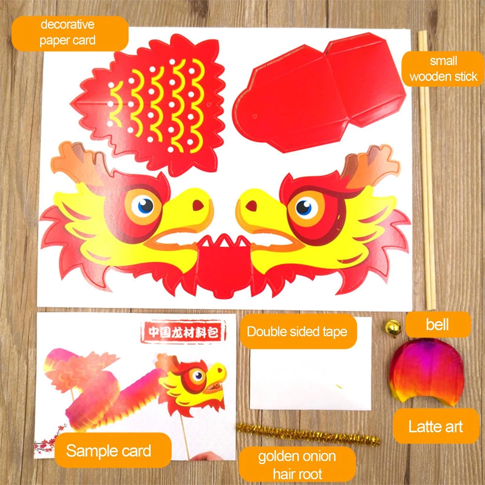 Handmade Lunar New Year Paper Dragon DIY Puppet Kits for Spring Festival Product Description Bullet Points: Cultural Discovery: Immerse in the art and tradition of Chinese Year with our Dragon kit. Strengthen your parent-child relationships with an entertaining activity that boosts creativity and imagination. Embark on a journey of cultural appreciation and joy with your loved ones, while decorating and assembling the dragon. Creative Design: Chinese dragon elements are creatively integrating into this exquisite design with bright colors and traditional metal bells, bringing good wishes to your home this Chinese Year. Enhanced Learning: Elevate your Chinese Year celebrations with our DIY Dragon Kit. Embrace the fun of DIY and unleash your creativity as you assemble this cute dragon ornament using all the necessary materials and reference picture. Improve your hands-on skills in collage making and make this year's festive decor extra special. Developing Ability: The Chinese Year Dragon is a fun and creative DIY project that can help you reduce the pressure, cultivate patience, and gain a sense of achievement. You can enjoy the production process and display your completed dragon with pride. It can also increase your confidence and self-control. Unique Selection: This Chinese Year Dragon is a unique gift for your friends who like handicrafts or dragon dance enthusiasts. It is handmade with exquisite craftsmanship and vivid details, and it can create a festive atmosphere for the Year. Unleash your creativity with this DIY Chinese Dragon Toy Kit! With bright colors and easy-to-follow instructions, this kit is perfect for dragon or lion dance enthusiasts. This unique toy will reduce your pressure and challenge your skills. Let the fun begin! Specification: Name: Chinese New Year Dragon Material: Paper Product Weight: about 25g Product Size: about 32x22x2cm/12.6x8.66x0.79 inches Packing List: 1* Decorative Cardboard 1* Bell 1* Double-Sided Tape 2* Wooden Stick 1* Reference Image 1* Pull Pattern 1* Golden Scallion Hair Root Or 4Pcs Notes: 1. Due to the different monitor and light effects, the actual color of the item might be slightly different from the color which is showed in the pictures. 2. Please forgive a slight measuring deviation due to manual measurement. Payment 1.PayPal is a preferred Payment method. 2.You can make a Credit payment via Paypal.Paypal will let you use MasterCard,Visa to pay. 3.Payment should be completed within 3 days after auction closed, or unpaid dispute will be filed for an closing auction.An unpaid case will be filled after 4 days. Delivery details 1. We ship to many countries. 2. Delivery Time: Ship from China via Speedpak to US (takes 8-12 days) Ship from China via others shipping method to other countries (takes 15-60 days) 3. If you want to choose another address, please leave us a message on ebay.Please check your shipping address carefully before checkout,it can't be changed if order completed. Seriously promise:Refund or resend will be offered if item still not arrive in 7-10 business days. Just send us an email,we will give you a satisfied solution as soon as possible. Return policy 1.All item comes with Basic 3 Months Sellers Warranty, if item defective in 3 months,We will offer replacement without extra charger (including shipping fee) After we receive the defective item. If item Defective after 3 Month, Buyers can still send it back, We will contact suppliers or Manufactory for Warranty. Buyers Might Need pay the Shipping fee For resend the replaced item. 2.If item DOA(Dead of Arrival), Buyers can return it in 30 Days, we will replace it with new item after we receive DOA item. Please Contact us Before you sent the item back. 3.All item can be returned for exchange only. The buyer has responsibility for all return shipping including DOA or defective return. About Feedback When you receive the item and satisfied with the product, please leave positive feedback and 5 scores DSR. We will leave a 5 Scores DSR feedback for you. If, for any reason you are not satisfied with your purchase, please contact via Ebay Message and we will do our best to resolve it. Please don't leave neutral or negative feedback without any communition with .