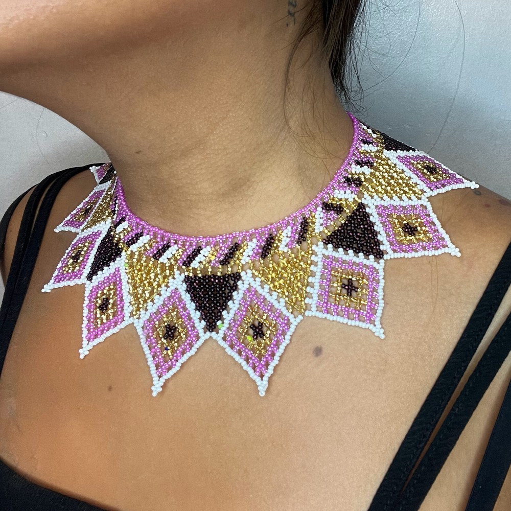 Handmade Mexican Aztec Beaded Choker Necklace 58cm