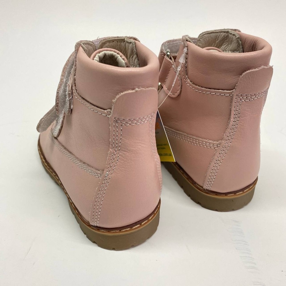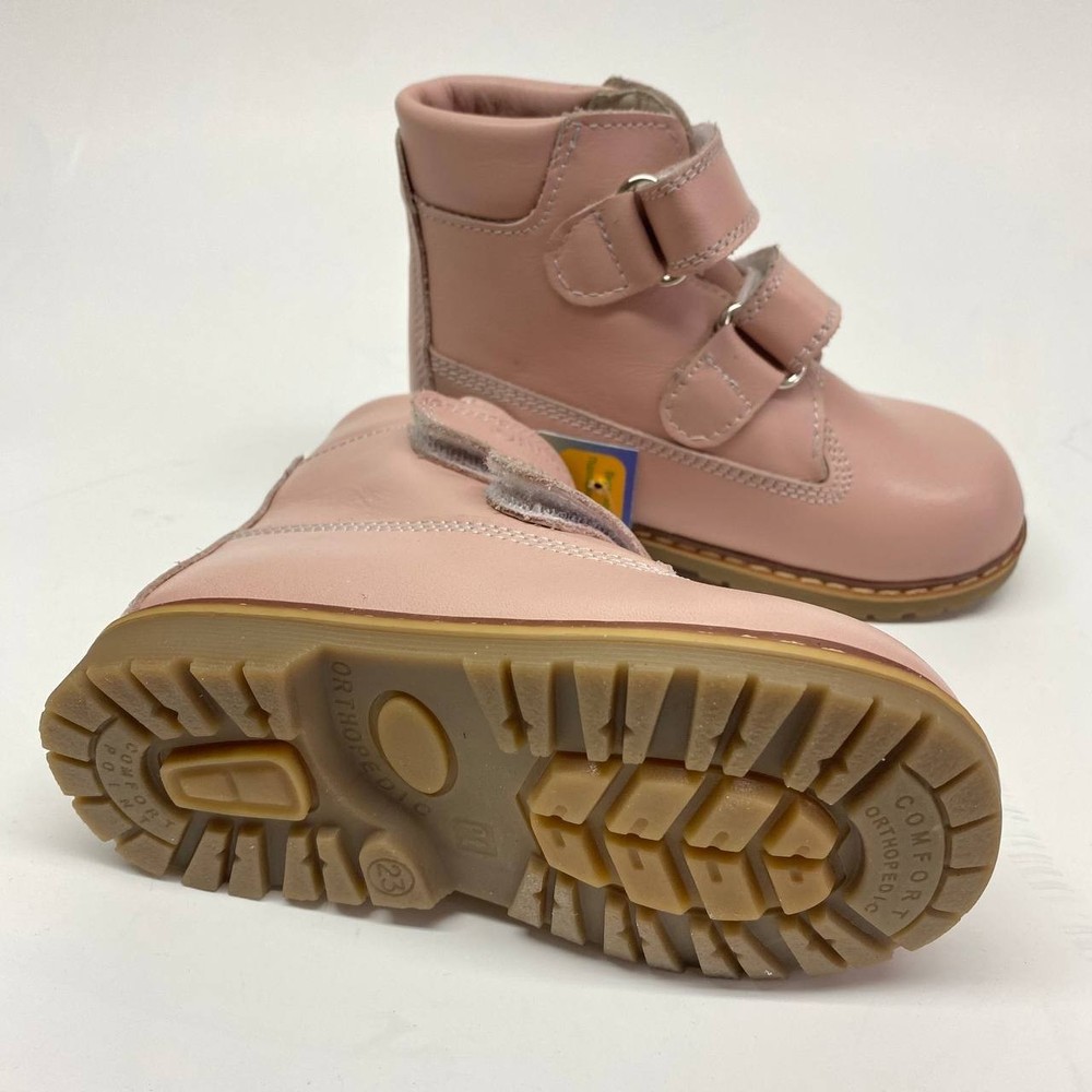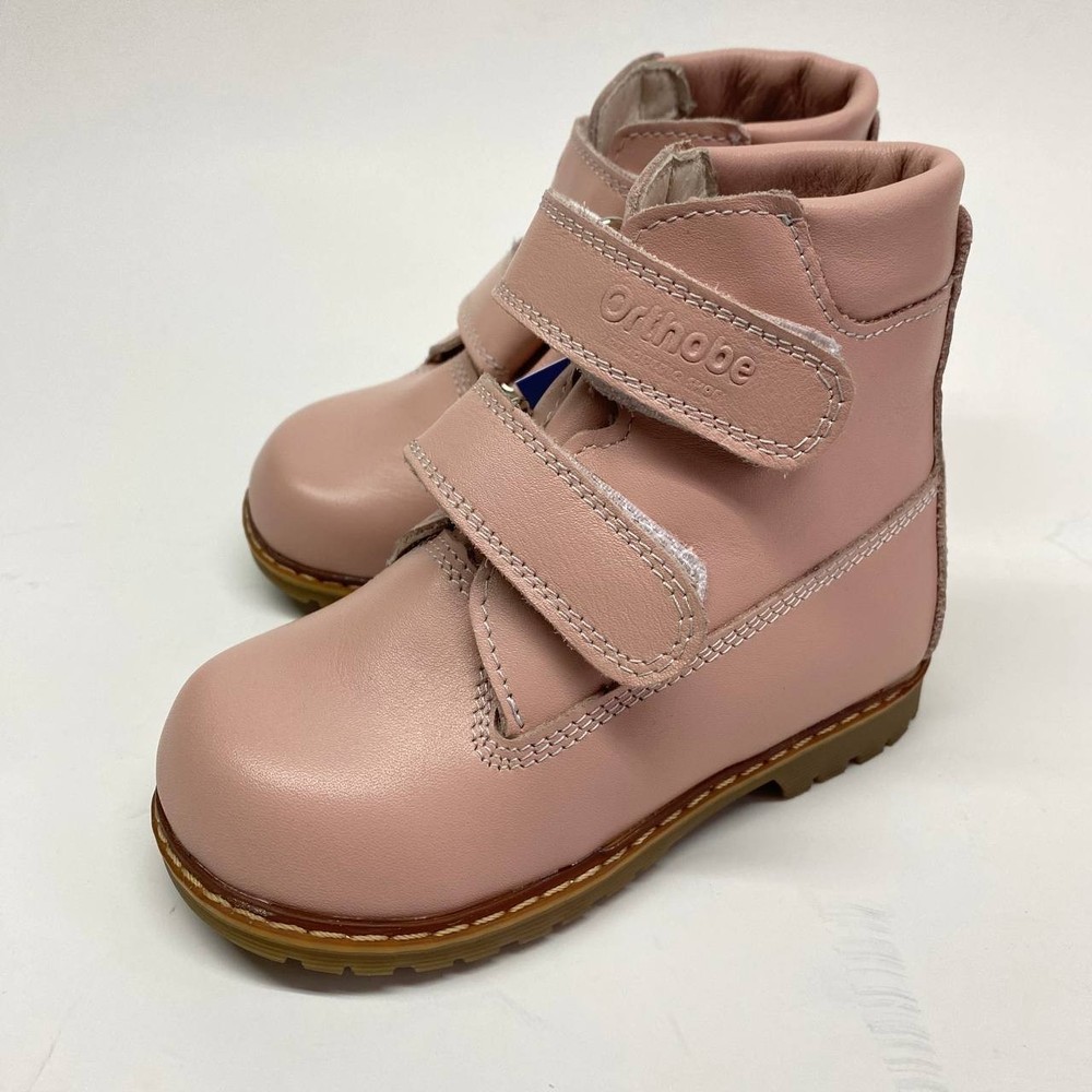 Handmade light pink orthopedic boots for girls. Crafted from premium natural leather, these classic minimalist boots feature a warm fleece lining and a removable orthopedic insole with arch support. Designed for comfort, warmth, and healthy foot development. Ideal for everyday wear during cooler seasons. Features / Highlights ✅ Natural leather upper — soft, breathable, and durable. ✅ Fleece lining and insole — keeps feet warm and cozy. ✅ Removable orthopedic insole — supports natural arch and posture. ✅ Thomas heel — provides correct foot alignment and stability. ✅ Handmade in Ukraine — crafted with care and attention to every detail. ✅ Adjustable hook-and-loop straps — easy for kids to put on and take off. ✅ Non-slip flexible sole — ensures safe movement. Sizes EU Insole (cm) US (Toddler) UK AU 23 15.5 8 7 7 24 16.5 9.5 8.5 8.5 25 16.8 10 9 9 Type Orthopedic boots for girls — Classic Style | Warm Fleece | Handmade Comfort