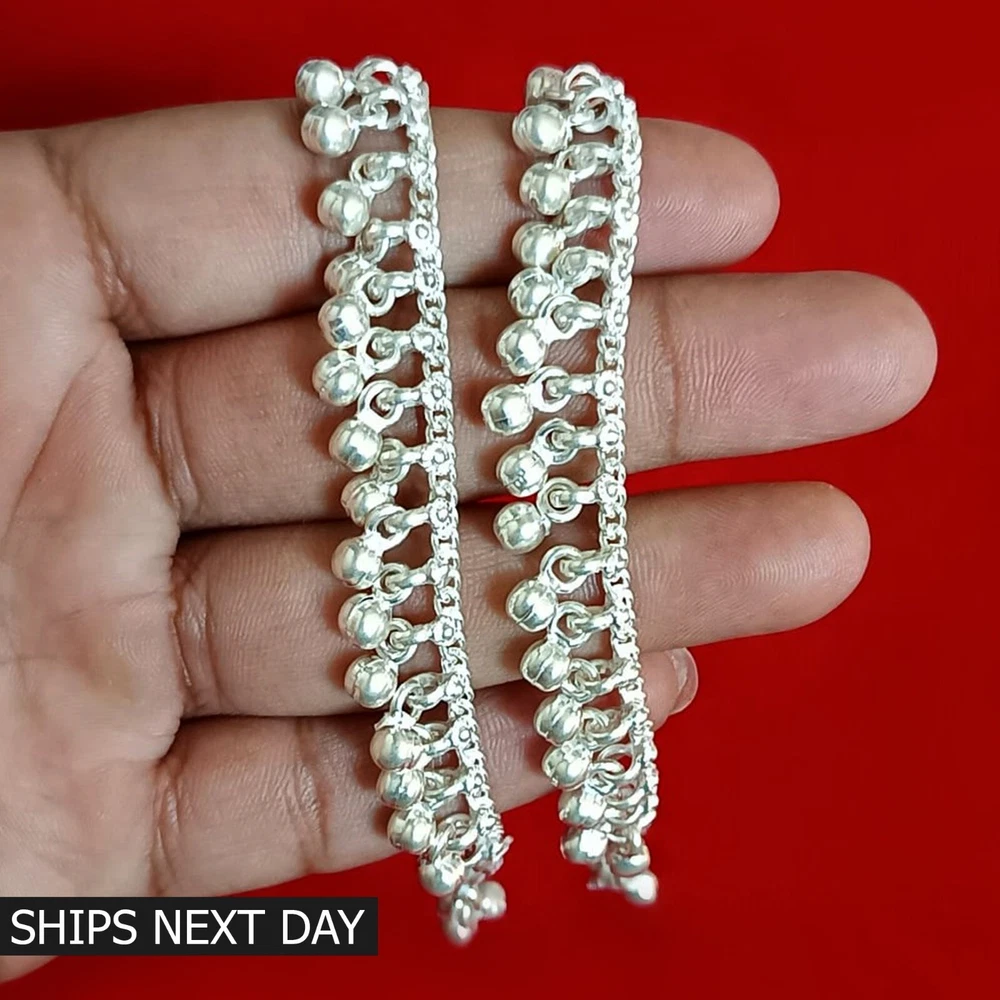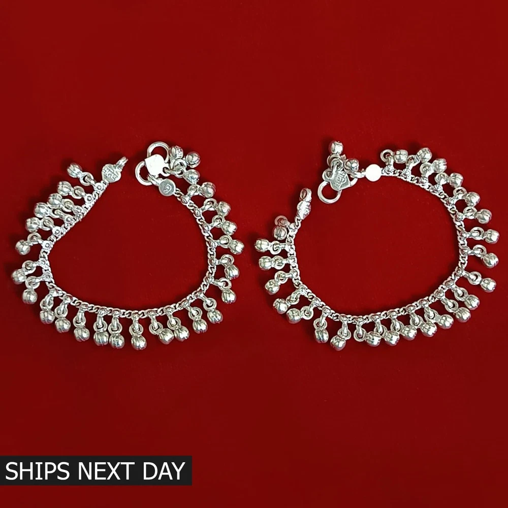 Pure Silver Anklet with Bells Handmade Indian Payal Silver Kids Jewelry 7" inch ➤ PRODUCT DETAILS ✦ Item Code:--------- GJP-1266 ✦ Item Weight:------- 32.00 grams (Approx.) ✦ Metal:---------------- Pure Silver ✦ Length:---------------7 Inch (Approx.) (4-5 Years) Note:- All the items appear larger than actual in size so please check measurements carefully before purchase. ================================================= THIS PRODUCT CAN BE GIFTED ON THE FOLLOWING OCCASIONS:- Birthday Gift, Anniversary Gift, Wedding Gift, Baby Shower Gift, Graduation Ceremony, Friendship Day Gift, Daughter's Day Gift, Independence Day, Mother's Day Gift, Housewarming Gift, Women's Day Gift, Father's Day Gift, Easter Gift, Valentine's Day Gift, Black Friday, Thanksgiving Day, Christmas Gift, Personalized Gift P A Y M E N T ∙ P O L I C Y __________________________________________ We have enrolled with Payoneer. We accept all payment options. S H I P P I N G ∙ P O L I C Y __________________________________________ We take handling time of 1 Business days from the date of receipt of the payment after receiving the cleared payment. All parcels are shipped by Standard Shipping Service. If a customer requests to send a parcel by Express Shipping then extra charges will be applicable, Choose express shipping during checkout. R E T U R N S ∙ P O L I C Y __________________________________________ I gladly accept returns and exchanges Contact me within: 7 days of delivery Send items back within: 30 days of delivery F E E D B A C K __________________________________________ Your feedback is very important for us, Please leave a positive review. Your appreciation enhances my work-ability. Negative feedback is not a solution. Before giving negative feedback, we request you to contact us for any issue regarding your order. and give us a chance to resolve it asap. A B O U T ∙ U S __________________________________________ We're a manufacturer and wholesaler of quality gemstone & handmade 925 sterling silver jewelry. We are offering a huge collection of Latest Jewelry Designs Hand Crafted in Solid 925 Sterling Silver with Natural Gemstone at Affordable prices. We also deal in customized jewelry that can be designed for men & women as per your request. ♥♥Thank you so much for visiting *GemsJewels925*♥♥