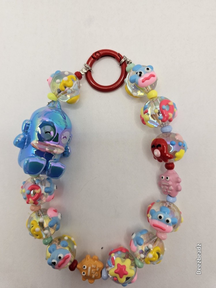 This beaded purse/bagcharm is handmade and features Sanrio BLUEFISH ( Hangydon)