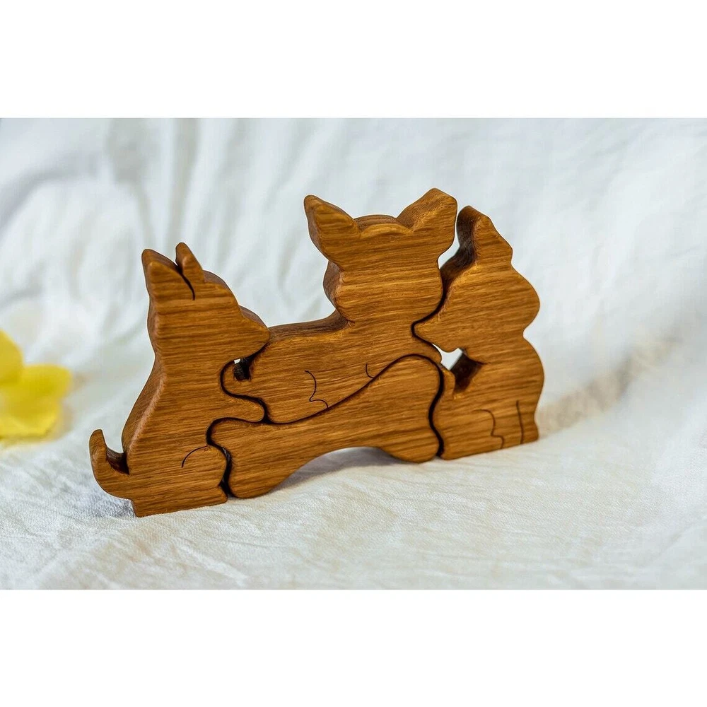 Handmade Wooden Puppies Hand Curved Puzzle Original Home Decor Wooden hand curved puppies puzzle figurine. Pets are great for those who cannot live without dogs. I'm sure they bring their owners happiness and pure love! Great present for your family, friends... It's just great present! The figurines are made of oak wood, processed with special orange oil and wax. Ideally smooth surface, without hooking. Height - 4.5 in Width - 7 in Depth - 1 in Please note that colors on your monitor screen may differ slightly from the actual product due to the color rendering of your device.