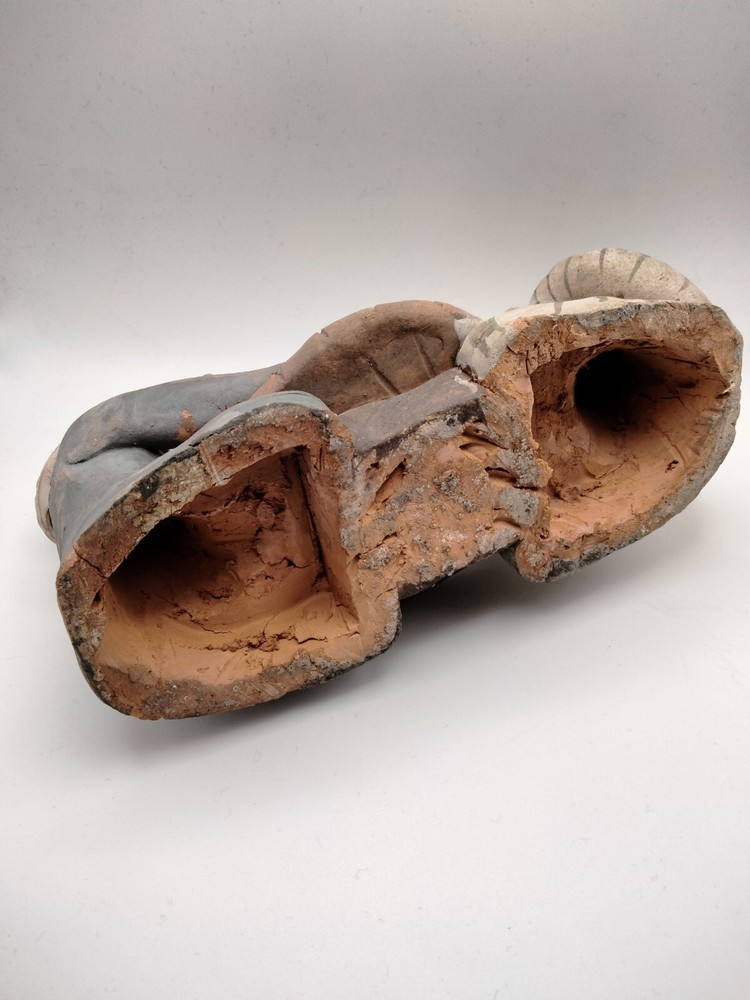 This clay statue was made by hand by skilled artists! The artwork wasn't signed signifying the artist made this as a practice piece to get better with time. Taking a closer look at the clay statue you can really see the details the artist decided to include in this one of a kind piece. These details really pop giving the statue a one of a kind look.