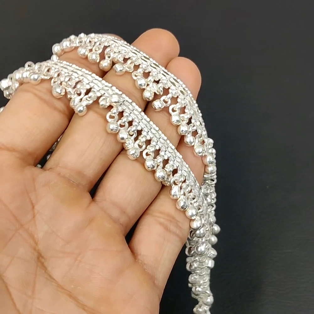 Handmade pure Silver Indian Payal With Noisy Jingle Bells Gorgeous Anklet Pair