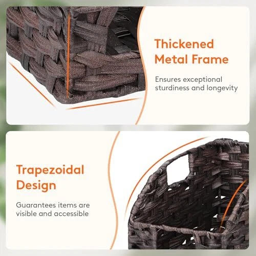 Return Policy Fast Delivery Trusted seller Handwoven PP Wicker Storage Basket, Waterproof Imitation Rattan Basket with Built-in Handles, Trapezoid Baskets for Organizing Shelves, Pantry, Black Walnut, 2-Pack (Large+Medium) Product Description Premium Durability: Crafted with high-quality handwoven PP wicker and reinforced with a thickened metal inner frame, the wicker storage basket ensures exceptional sturdiness and longevity Four-Piece Set: This set includes four baskets, available in two sizes: 7.87 × 11.8 × 7.08 inches and 6.69 × 10.62 × 6.49 inches provides versatility and convenience; Each imitation rattan basket is handmade, so slight variations in size may occur Versatile Use: These woven baskets are ideal for storing spices, vegetables, canned goods, snacks, books, games, media, toilet papers, hand towels, and laundry supplies; Perfect for kitchens, pantries, living spaces, bathrooms, and laundry rooms Waterproof Material: Treated with waterproofing, these trapezoid decorative baskets can be easily rinsed with water and are especially suitable for areas with high humidity, such as the kitchen, bathroom, and laundry room Easy to Use: Each basket has three built-in handles allowing for easy carrying and moving from the front or sides; The trapezoidal design ensures that items are easily visible and accessible; When not in use, the shelf baskets can be stacked to save space Shipping Returns Payment Shipping Shipping is FREE to all addresses other than APO/PO boxes in the lower 48 states. All our stock ships from US-based warehouses. Shipped via USPS or UPS (depending on location and package weight) Unless stated otherwise, all orders will ship within 24-72 hours of your payment being processed. Check our feedback to see the great reviews of FAST shipping we offer. Returns Seller does not accept returns Payment We currently accept payment via eBay managed payments only. Once payment is cleared, we will dispatch your shipment within 1-3 business days. Please refer to the "Shipping" tab for more information regarding shipping speed to your destination.