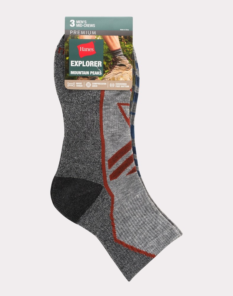 60 DAY RETURNS FREE SAME DAY SHIPPING MEN WOMEN BOYS GIRLS SHOP BY BRANDS Hanes Playtex Champion Bali Just My Size Barely There Wonderbra L'eggs Hanes Hosiery Maidenform Lilyette Hanes Explorer Mountain Peaks Men's Cushioned Mid-Crew Socks, 3-Pair Pack Hanes Explorer Mountain Peaks Men's Cushioned Mid-Crew Socks, 3-Pair Pack Style : Item Description ON THE GO COMFORT On the trail or on the streets, enjoy that top-of-the-mountain feeling with men’s mid-crew socks that are made tough - but soft where they need to be. Hanes Explorer Mountain Peaks socks are crafted from a sturdy, blended fabric that includes natural wool yarns for warmth even when the weather turns. Reinforced in targeted areas for enhanced durability, they feature a cushioned foot bottom that softens the impact of hard surfaces. Knit-in arch support ensures a secure fit. Climbing mountains or navigating the concrete jungle can work up a sweat, but ventilating mesh panels and Cool Comfort® moisture-wicking fabric team up to keep feet cool and comfortable. Available in a value pack of three assorted colors, mid-crew socks hit just below the calf. HANES EXPLORER - For comfort that keeps up with you and your active lifestyle. Designed with durable yet refined, comfortable fabrics to take you from mountain peaks to city streets. MADE TOUGH - Crafted from a quality blended fabric and featuring reinforcements in the heel and toe, these durable men’s socks are ready to scale any heights. BUILT FOR COMFORT - Cushioned foot bottoms keep you comfortable no matter how long you’re on your feet. WOOL FIBERS - Mountain Peaks men’s socks are crafted from a quality, blended fabric that includes wool fibers for comfort and warmth during all types of weather. STAYS COOL - Breathable mesh panels support ventilation while Cool Comfort fabric lifts moisture from the skin, keeping feet cool and comfortable. STAYS FRESH - FreshIQ Advanced Odor Technology fights the bacteria that cause odors. SECURE FIT - Knit-in arch support hugs your feet, improving the fit of cushioned socks that are ready to climb as high as you are. SOCKS PACK - Socks multipack features three pairs of men’s shoe sizes 6-12 in assorted colors. COLD WATER WASH - Hanes recommends washing these men's socks in cold water to reduce energy consumption and save money. Fabric Information Our Guarantee You can buy with confidence because you are purchasing directly from Hanes! You can trust that your purchase will be the authentic, first quality Hanes merchandise you love, as sold in leading stores everywhere. SIZE CHARTS Click here to view FIRST QUALITY Brand New Retail Items BROWSE BY BRAND ABOUT US HanesBrands is a socially responsible manufacturer and marketer of leading everyday basic apparel under some of the world's strongest apparel brands in the Americas, Europe and Asia, as well as in Australia and South Africa. Our iconic innerwear and activewear apparel brands found in the United States and elsewhere include Hanes, Champion, Playtex, Bali, Maidenform, JMS/Just My Size, Wonderbra and Gear for Sports. Outside the United States, we also have dominant national and regional brands, including DIM, Nur Die/Nur Der, Lovable, Abanderado, Shock Absorber, Zorba, Sol y Oro, Rinbros, Track N Field and Ritmo. We are the world’s largest marketer of basic apparel. We sell bras, panties, shapewear, sheer hosiery, men's underwear, children's underwear, socks, T-shirts, sweatshirts, fleece and other activewear. In the United States, we sell more units of intimate apparel, male underwear, socks, shapewear, hosiery and T-shirts than any other company. Founded in 1901, Hanes has a long history of innovation, product excellence, and brand recognition. In fact, nearly 90 percent of U.S. households have our company's products in them. We revolutionized Tagless T-shirts and underwear, we invented the sports bra and the stretch-cup T-shirt bra, we were the first to advertise a bra on national television (Playtex), and we are innovating with ComfortBlend and temperature-control X-Temp fabrics and seamless Smart Sizes bras. Our Sell More, Spend Less and Make Acquisitions strategies are driving growth and creating value for our shareholders, consumers, retailers, employees and communities. Hanes has made more than a half dozen acquisitions, including Maidenform Brands, Gear for Sports and Knights Apparel in the United States and DBApparel in Europe. Based in Winston-Salem, N.C., Hanes is a member of the S&P 500 and is ranked No. 490 on the Fortune 500 list. The company has approximately 65,300 employees in more than 40 countries. Unlike most apparel companies, Hanes primarily operates its own manufacturing facilities. More than 90 percent of the apparel units that we sell worldwide and in the United States are manufactured in our own plants or those of dedicated contractors. We take great pride in our strong reputation for ethical business practices and the success of our Hanes for Good corporate responsibility program for workplace practices and community and environmental improvement. The company is the only apparel producer to ever be honored by the Great Place to Work Institute for its workplace practices in Central America and the Caribbean. In the United States, the company has earned the Forbes magazine Best Place to Work honor. Hanes has won U.S. Environmental Protection Agency Energy Star sustained excellence recognition for seven consecutive years. Hanes has significant goals for reducing energy use, carbon emissions and water use and publicly reports its progress each year. More information about our Hanes for Good corporate responsibility initiatives may be found at www.HanesForGood.com PAYMENT Method: - Immediate payment is required upon selecting "Buy It Now". - We only accept payment via US PayPal accounts. PayPal allows you to pay using a major credit card or direct transfer from your bank accounts. Sales Tax Items purchased from Hanesbrands and shipped to any US location ma