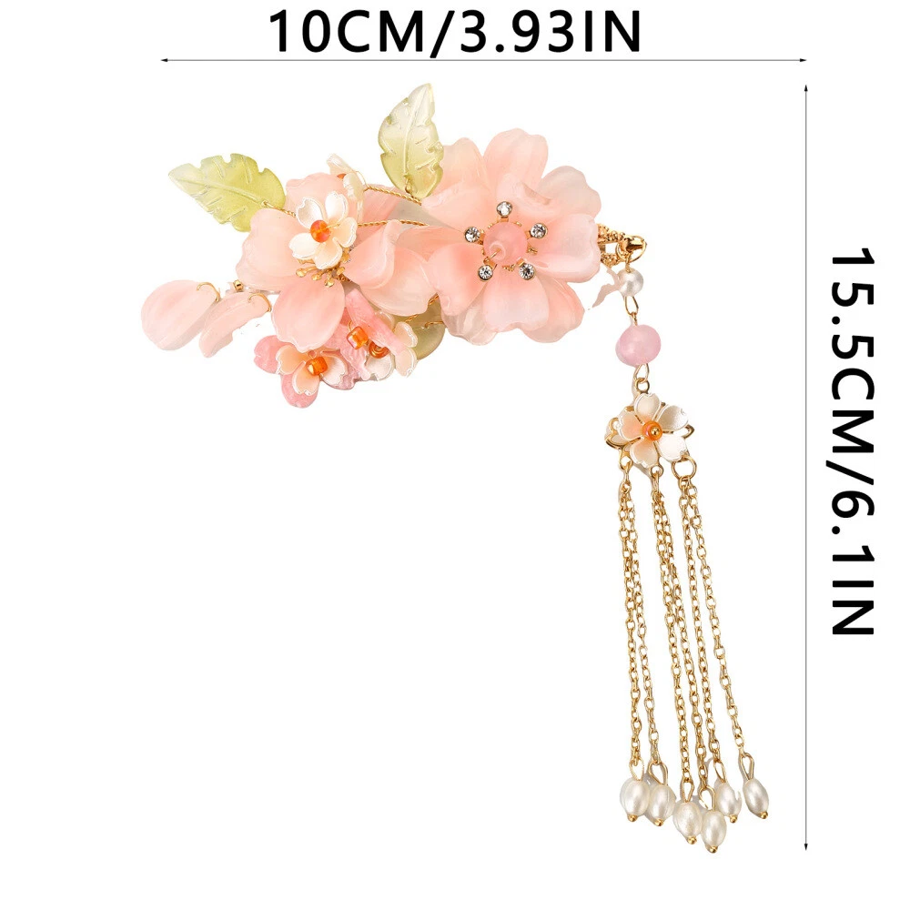 Features: Exquisite Hanfu Headwear Hair Jewelry: Enhance your Hanfu style with this stunning set of flower hair jewelry made specifically for women. The intricate design features pink and white flowers, complemented by green leaves, creating a beautiful headdress that adds elegance to any outfit. Versatile Hair Jewelry Headwear Set: This set includes a side hair comb, hair clip, and earring headwear, allowing you to create various styles and combinations. Whether you're attending a cosplay party, wearing a Chinese cloth Cheongsam, or simply looking for a unique accessory, this set has got you covered. Retro Charm with a Modern Style: The long tassel gentle color retro head ornament exudes a sense of vintage while incorporating modern elements. Its unique design and vibrant colors make it a perfect matching for Hanfu style clothes, adding a touch of sophistication to your overall look. Ideal Gift for Friends, Girlfriend, or Wife: Surprise your loved ones with this novel gift that combines traditional Chinese aesthetics with contemporary fashion. Perfect for birthdays, anniversaries, or special occasions, this headwear set is sure to make a lasting impression. Premium Quality and Craftsmanship: Each piece of hair jewelry is meticulously crafted with attention to detail, ensuring durability and longevity. Made from quality materials, this headwear set is designed to withstand daily wear and tear, allowing you to enjoy its beauty for years to come. Specification: Material: Alloy, imitation pearl, glass/coloured glaze Gender: Women Notes: 1. Due to the lighting effects and shooting angles, there is a color difference in the product, please understand. 2. Due to manual measurement, there is a tolerance in the product size.