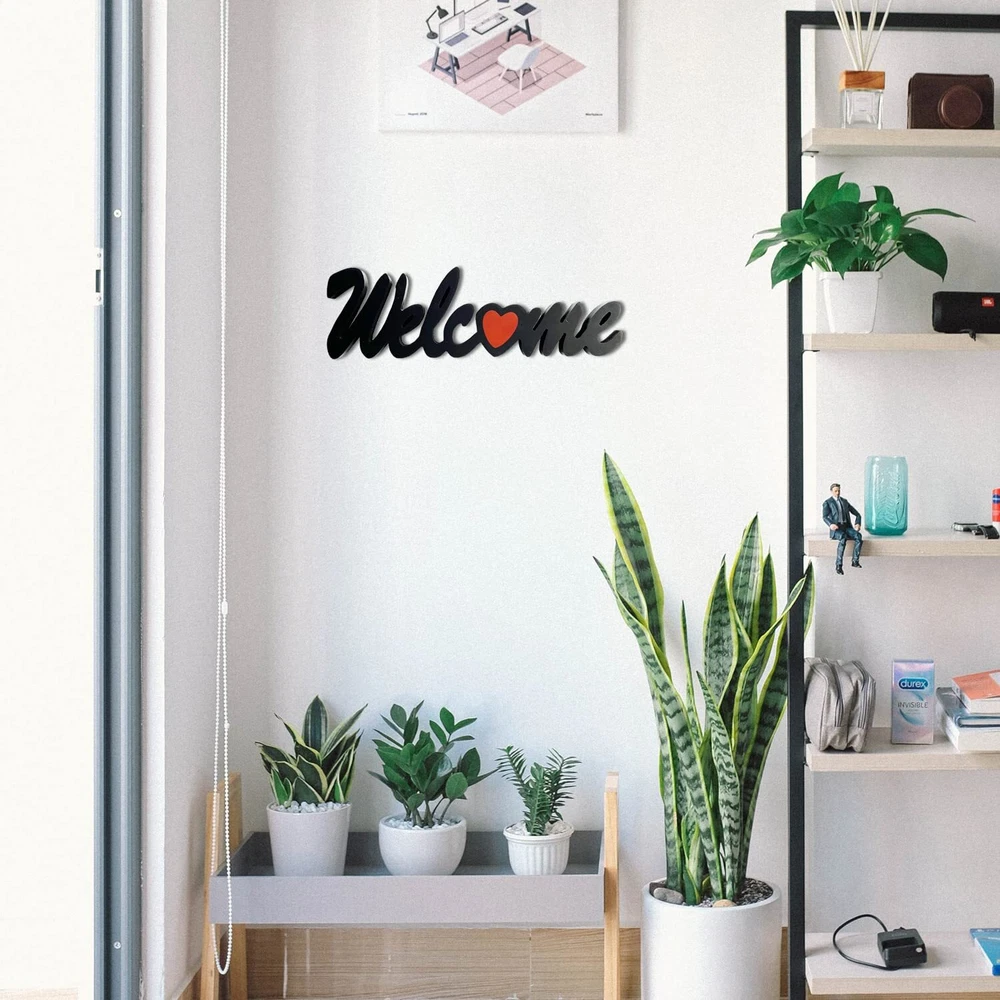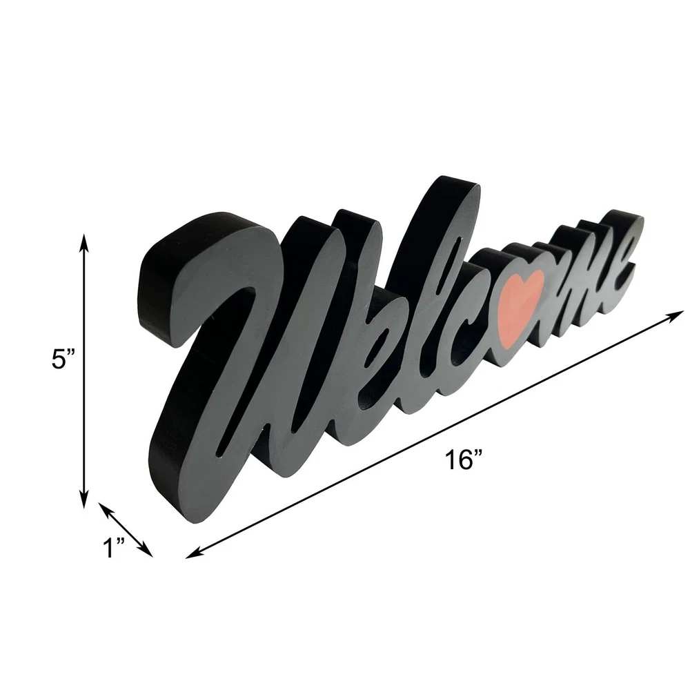 The Welcome word cutout table sign adds a classic charm and personal touch to any room in your home. Black letter standing centerpieces tabletop decoration with 1 inches width can be easily free standing on the table, mantel or other countertop. Wood hanging Welcome sign can create sweet and warm atmosphere with cutout welcome letter with a red heart design. The home cutout letters sign makes a unique gift idea for your friends, family or anyone you love. These wood sign for home decor blends seamlessly with any modern, farmhouse, country, vintage or rustic design room style. Rustic Hanging Wood Word Welcome Sign is made of high quality MDF, cutout word Welcome with a red heart replacing letter O. Sturdy and unique design. Black Block Letter Sign Wall Decorations measures 16" X 1" x 5". Wood Welcome table sign comes with two metal hangers at back and ready to be mounted on the wall or just place on any tabletop or countertop. Free Standing Welcome Word Sign Table decor can firmly stand on the tabletop or counter of the kitchen, dining room, living room, book shelves, office or any flat surface you like. Cutout Welcome Letter Table Decoration is a great housewarming gift, birthday gift, Mother's Day, Father's Day, Valentine's Day, wedding gift, Christmas gift for friends or families! Wooden Welcome Heart Centerpieces Decor for Tables & Mantel is designed with antique and modern elements for a unique and stylish look. Complement any room styles. Bringing a touch of charming accent to your home.