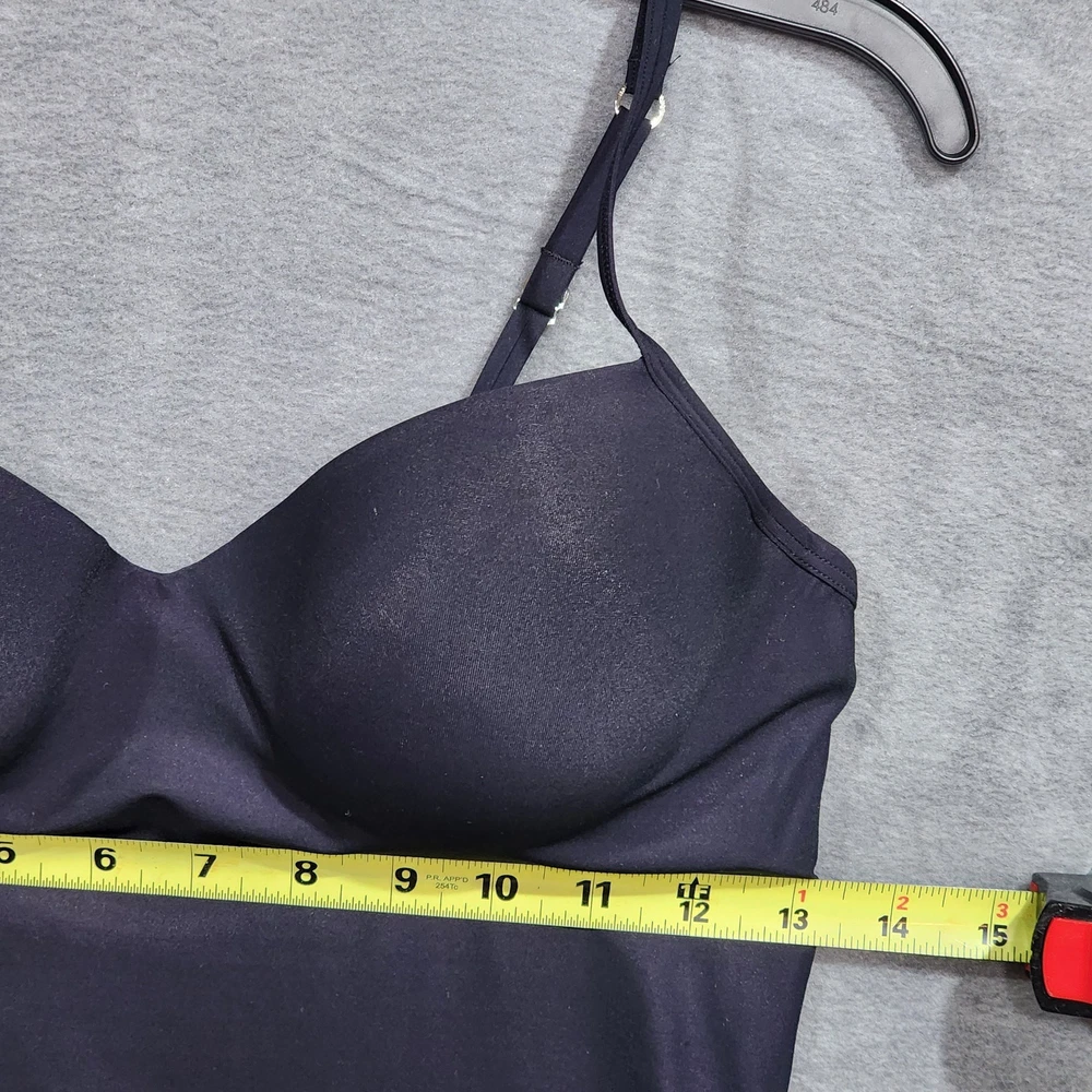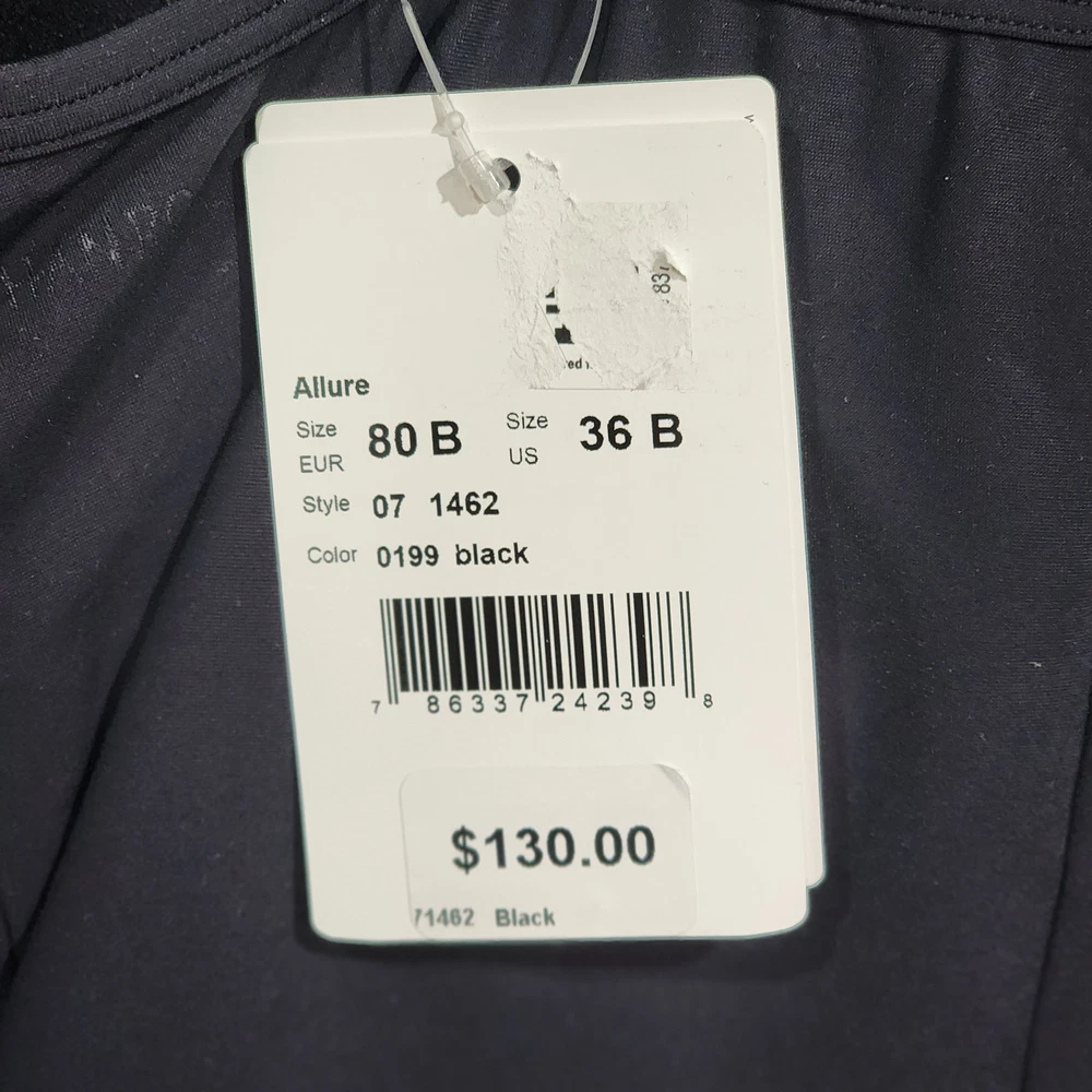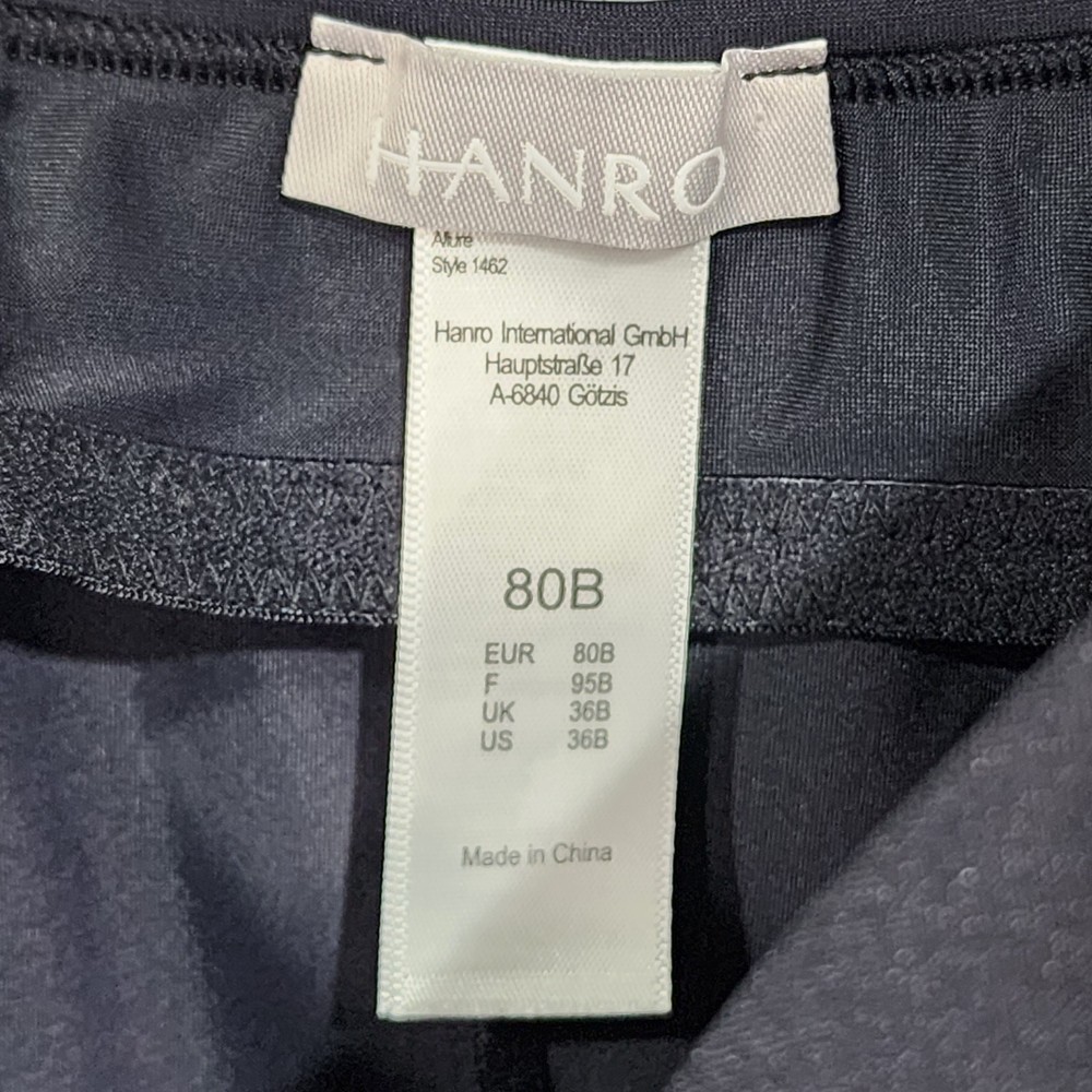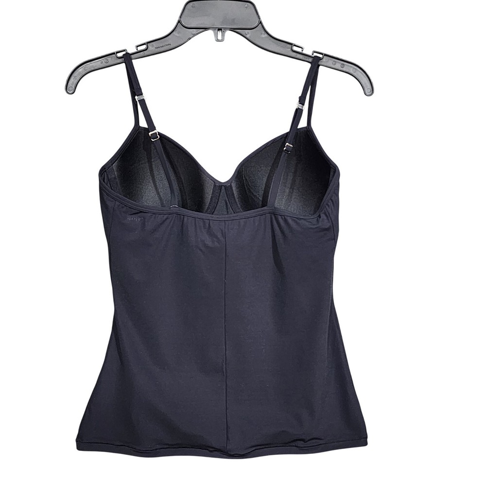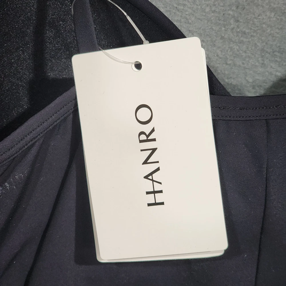 Hanro Women's Allure Bra Camisole in Black 36B padded fastenings, soft straps, and flat hems stretch jersey camisole built-in T-shirt bra underwire Sweetheart neckline thin adjustable straps. New with tags. Imperfection: Paper hang tag may be torn or have tape or stickers attached/detached, see photos Inv# 12-020
