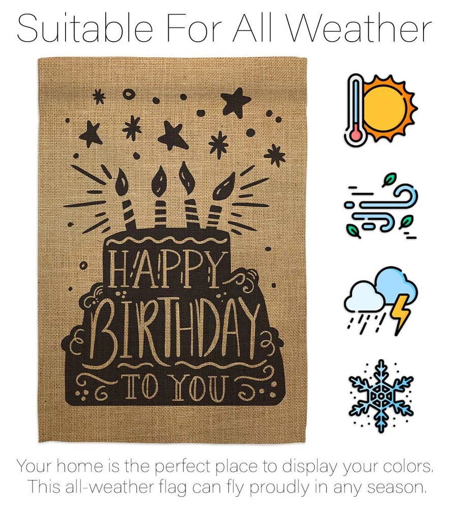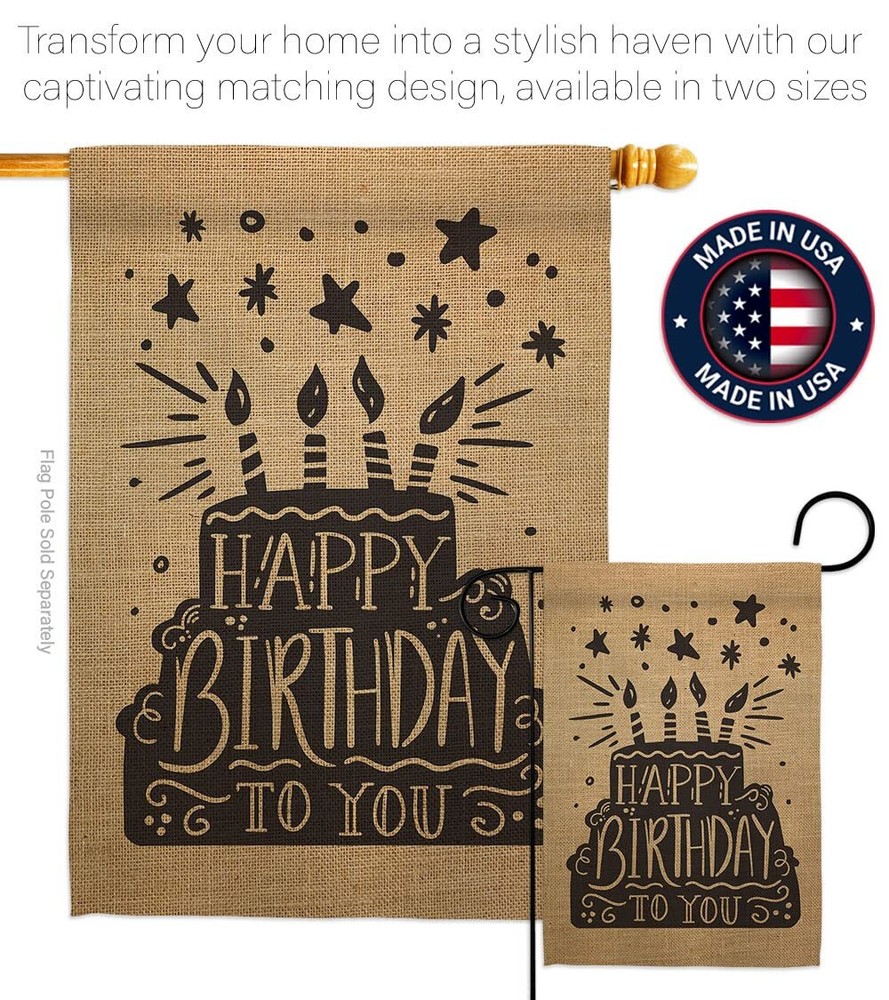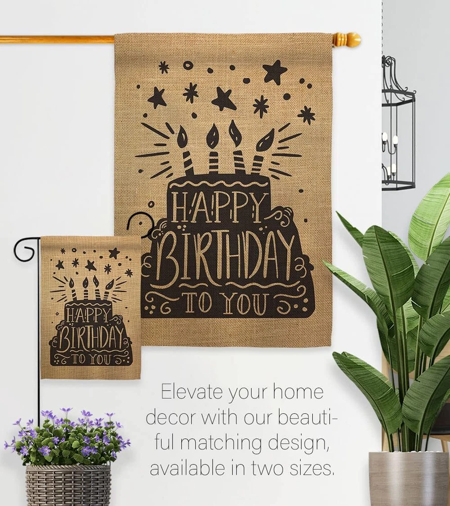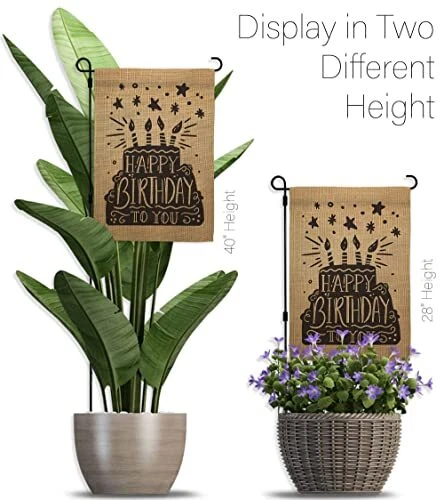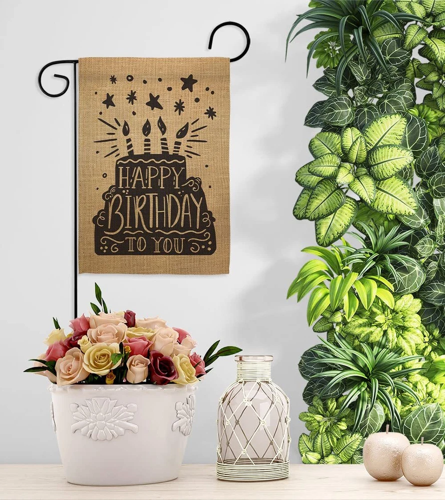 Happy Birthday Garden Flag Set with Stand and Cake Design for Celebrations