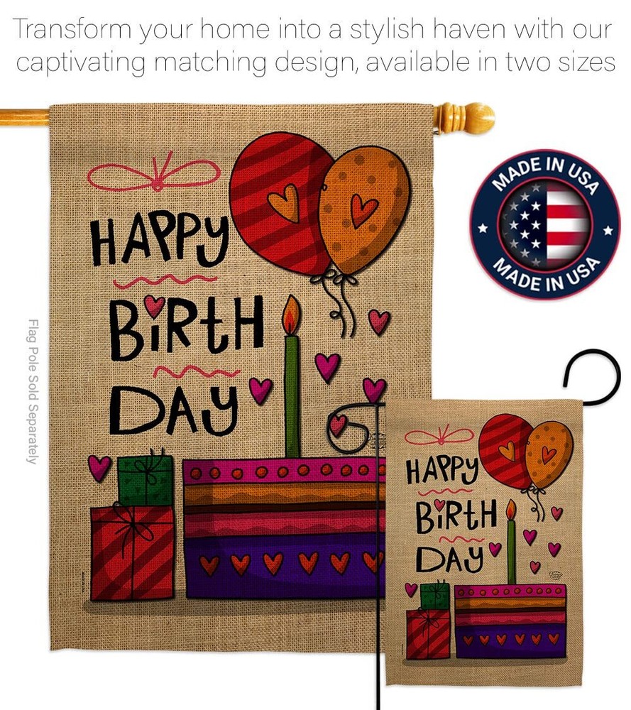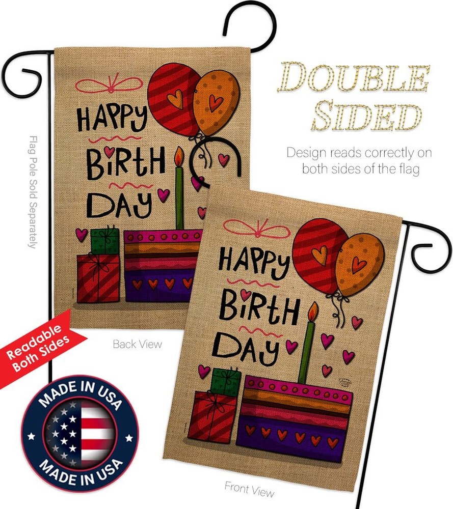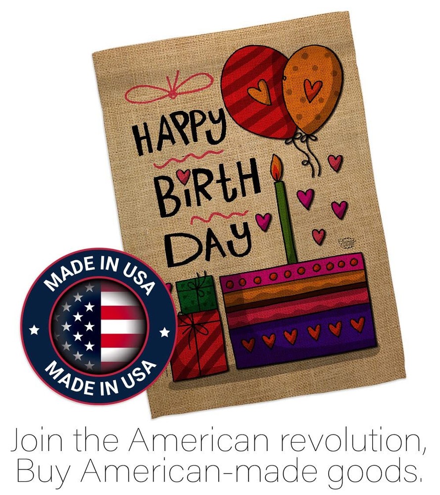 PROUDLY Made In USA - Package And Product Designed In California PURCHASE WITH CONFIDENCE - From 's US Authorized Resellers MADE OF DURABLE - 100% Thick Polyester Fabric construction helps resist the wear and tear from frequent use TEXT READABLE BOTH SIDES - Garden Flag Set Double-Sided Print DURABLE FLAG - Double stitching panels on multiple rows and high quality Sleeve to provide lasting strength VIBRANT COLORS - With UV-Resistant Maintains Its Colors All Season Long FEATURES - Free Garden Flag Hardware Included!