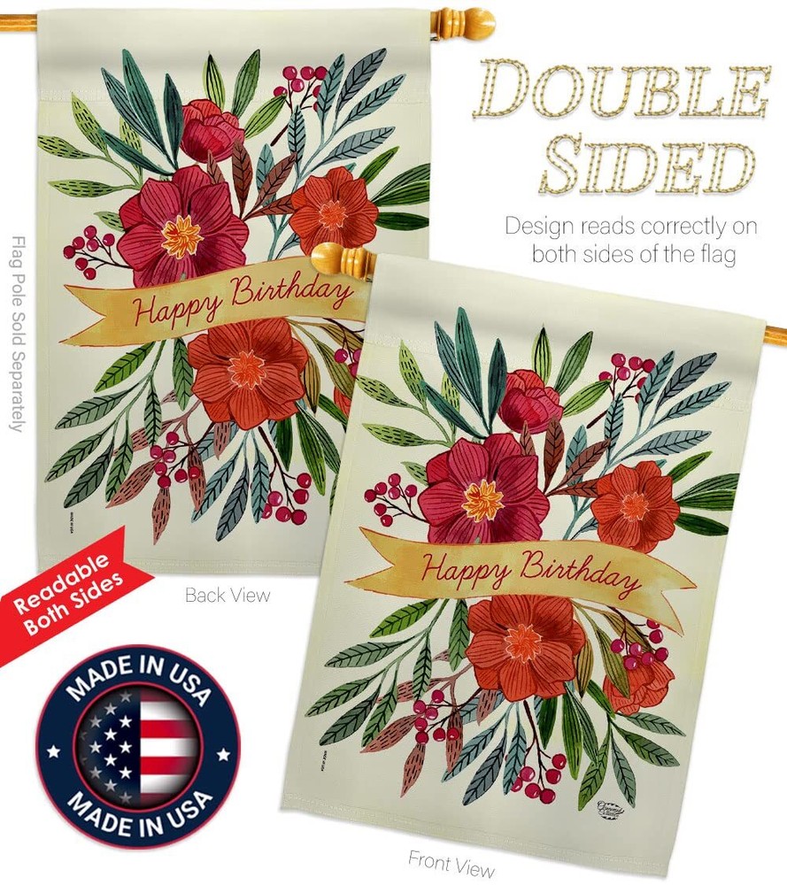 PROUDLY Made In USA - Package And Product Designed In California PURCHASE WITH CONFIDENCE - From 's US Authorized Resellers MADE OF DURABLE - 100% Thick Polyester Fabric construction helps resist the wear and tear from frequent use TEXT READABLE BOTH SIDES - House Flags Pack Double-Sided Print DURABLE FLAG - Double stitching panels on multiple rows and high quality Sleeve to provide lasting strength VIBRANT COLORS - With UV-Resistant Maintains Its Colors All Season Long FEATURES - Sleeve Hanger fits standard Banner/Flagpole, Bracket, Arbors or stand, SOLD Separately